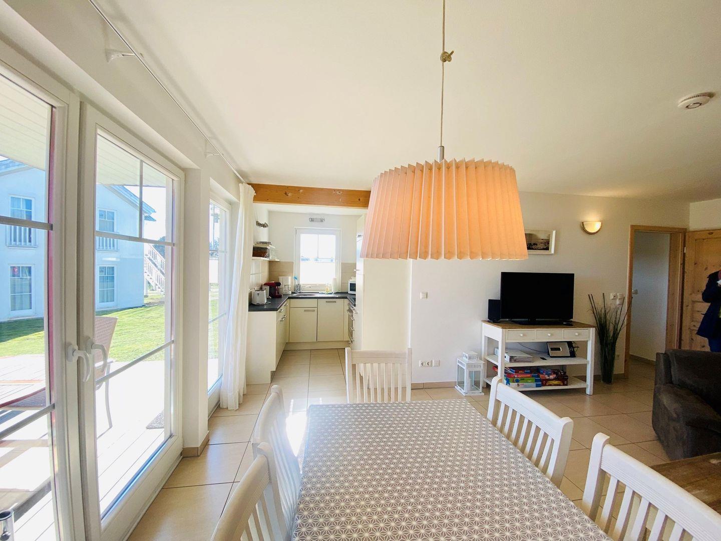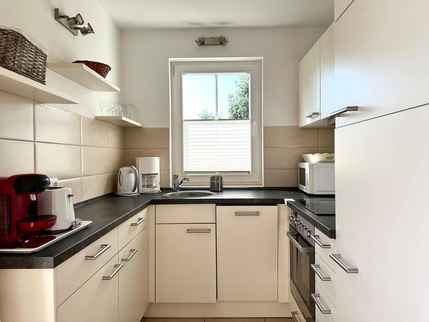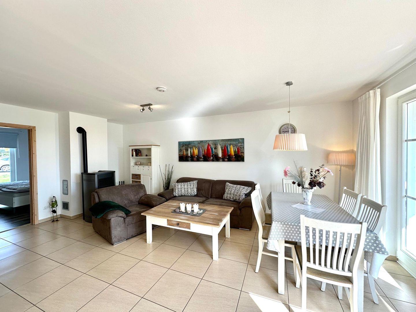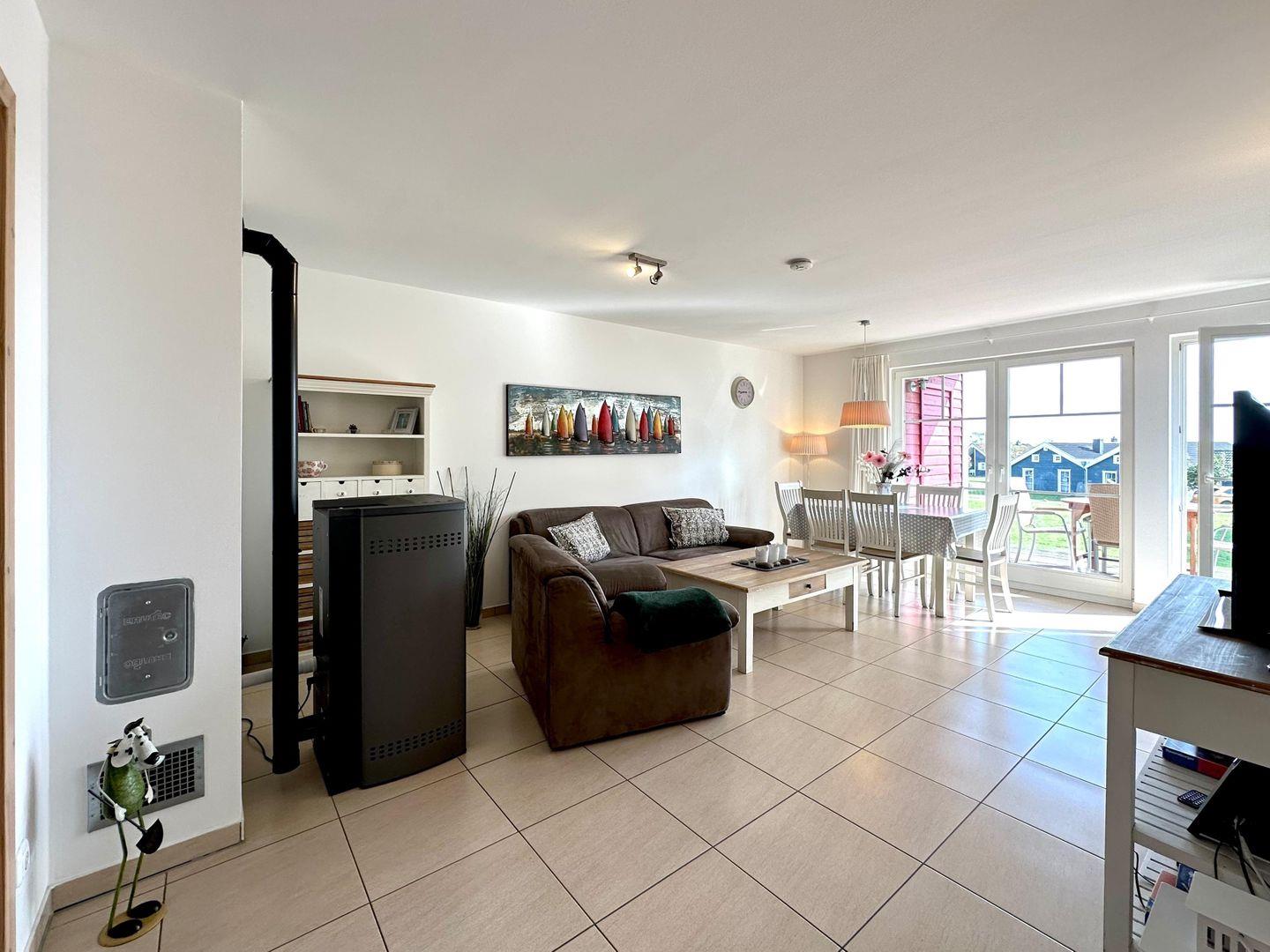 Das helle Wohnzimmer ist mit einem gemütlichen Sofa (neues Sofa seit 2022), 2 Cocktailsesseln und einem Pelletofen für die gemütlichen Stunden ausgestattet. Die angrenzende Küche ist sehr gut ausgestattet und lässt die Möglichkeit offen, sich auch dort ganz Zuhause zu fühlen. Es steht Ihnen dort u.a. auch eine Tassimo Kapselmaschine zur Verfügung.