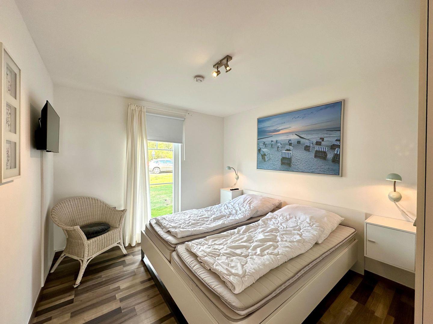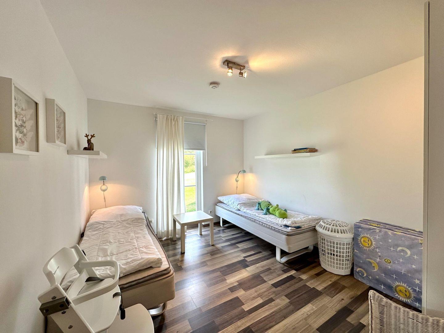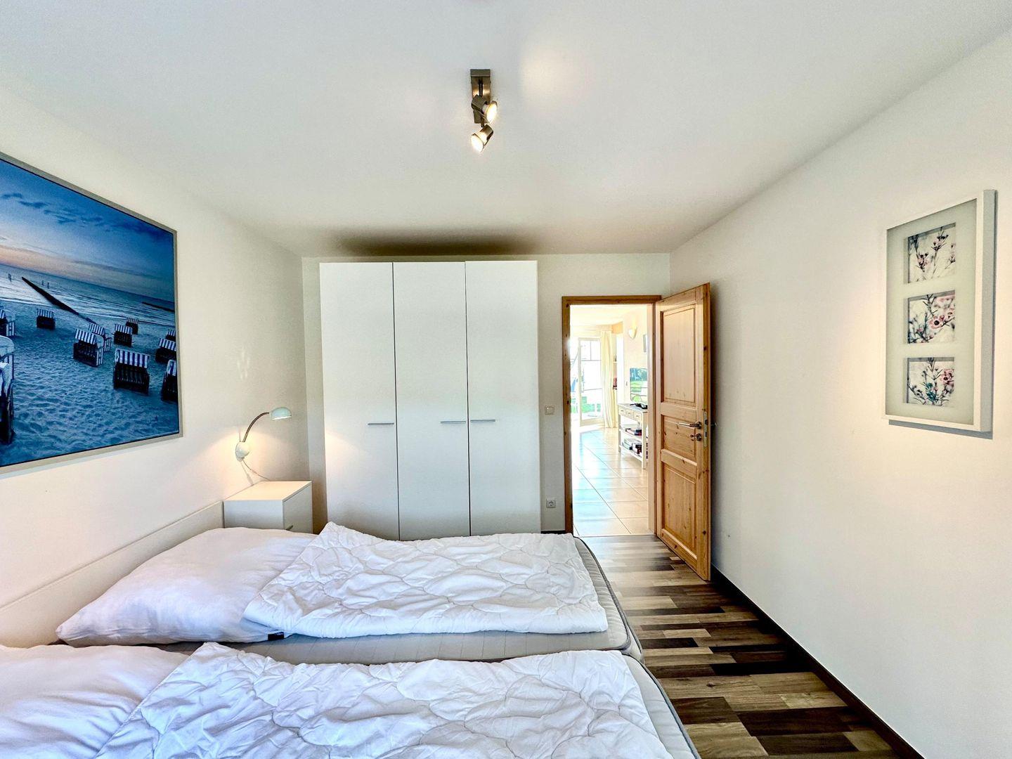 Im ersten der zwei gemütlichen und geschmackvoll eingerichteten Schlafräume befindet sich ein Boxspring-Doppelbett und im zweiten Schlafraum zwei Boxspring-Einzelbetten. Bei Buchung des Wäschepaketes sind die Betten bei Anreise bereits für Sie bezogen.