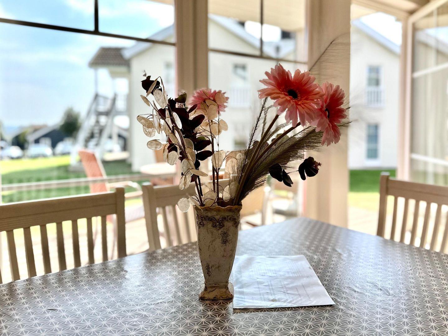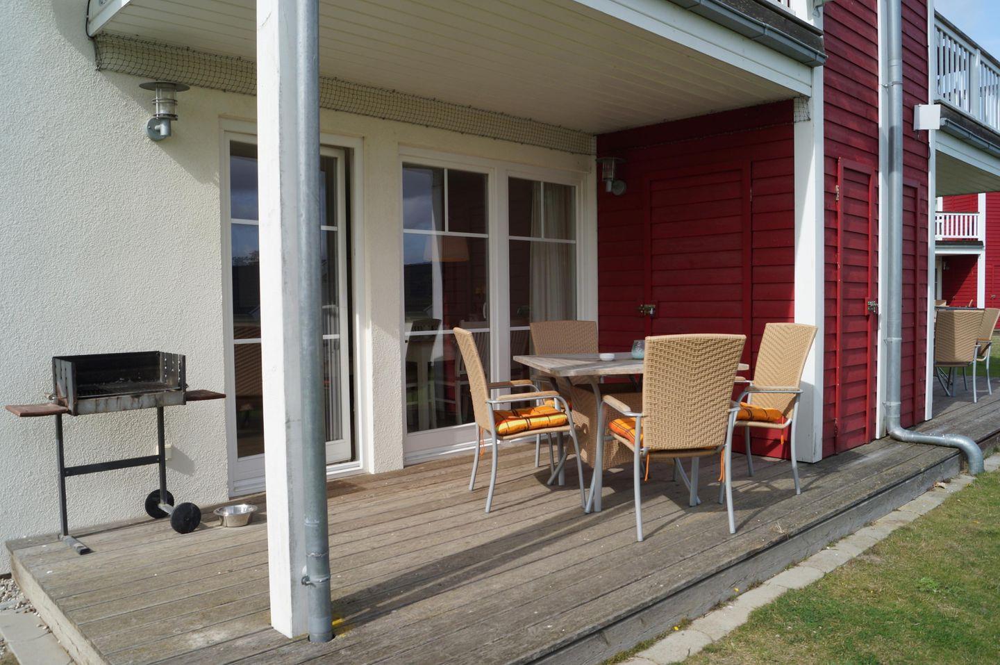 Die nordische Ferienwohnung 'Muckla' App 45 befindet sich im Erdgeschoß mit eigener Terrasse und Teilmeerblick. Die Urlaubsunterkunft hat ihren eigenen Eingang und befindet sich in einem 4 - Parteienhaus, einem sogenannten Quattro-Bungalow.