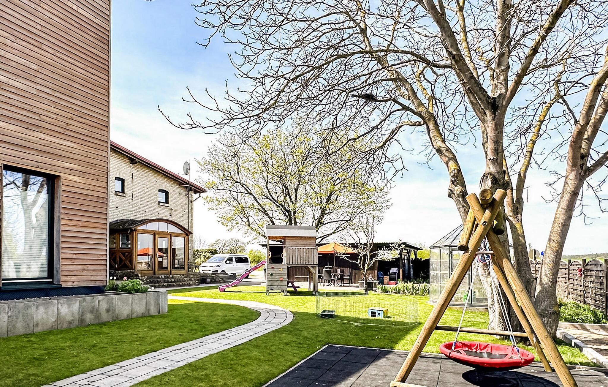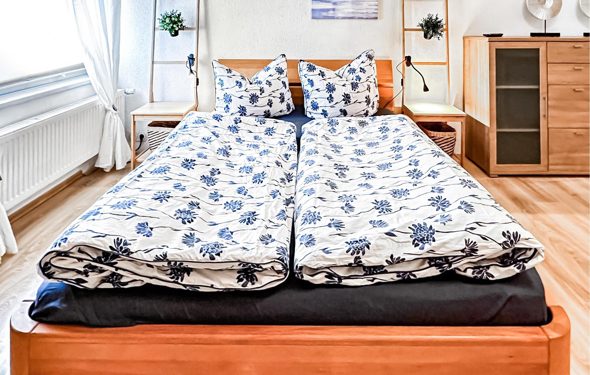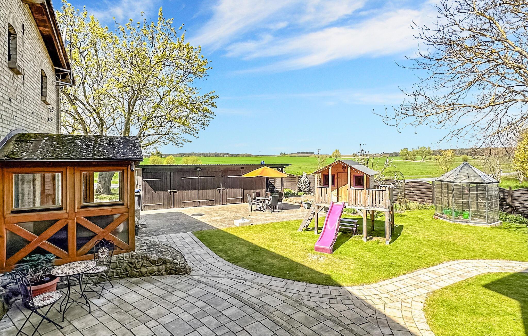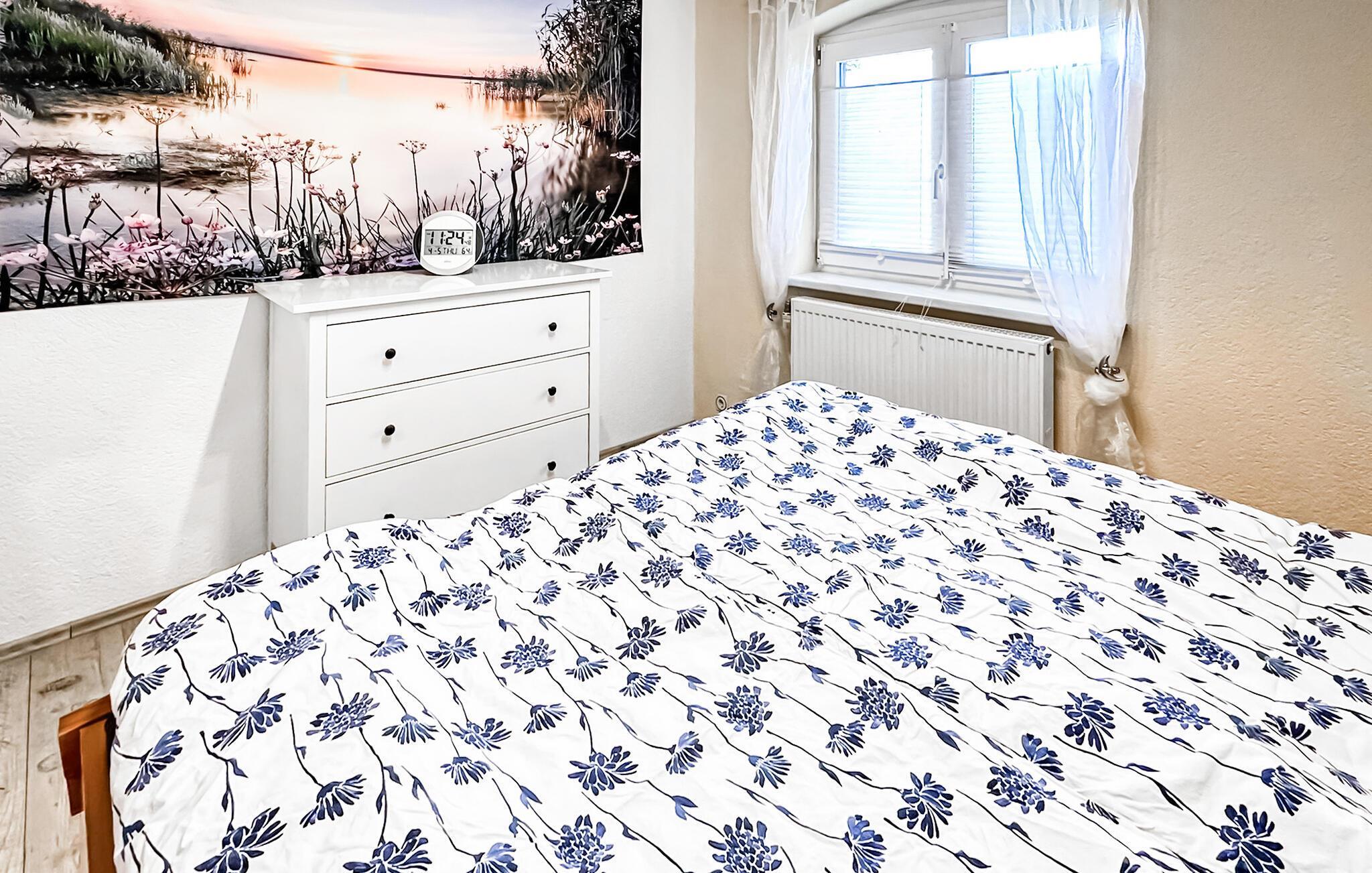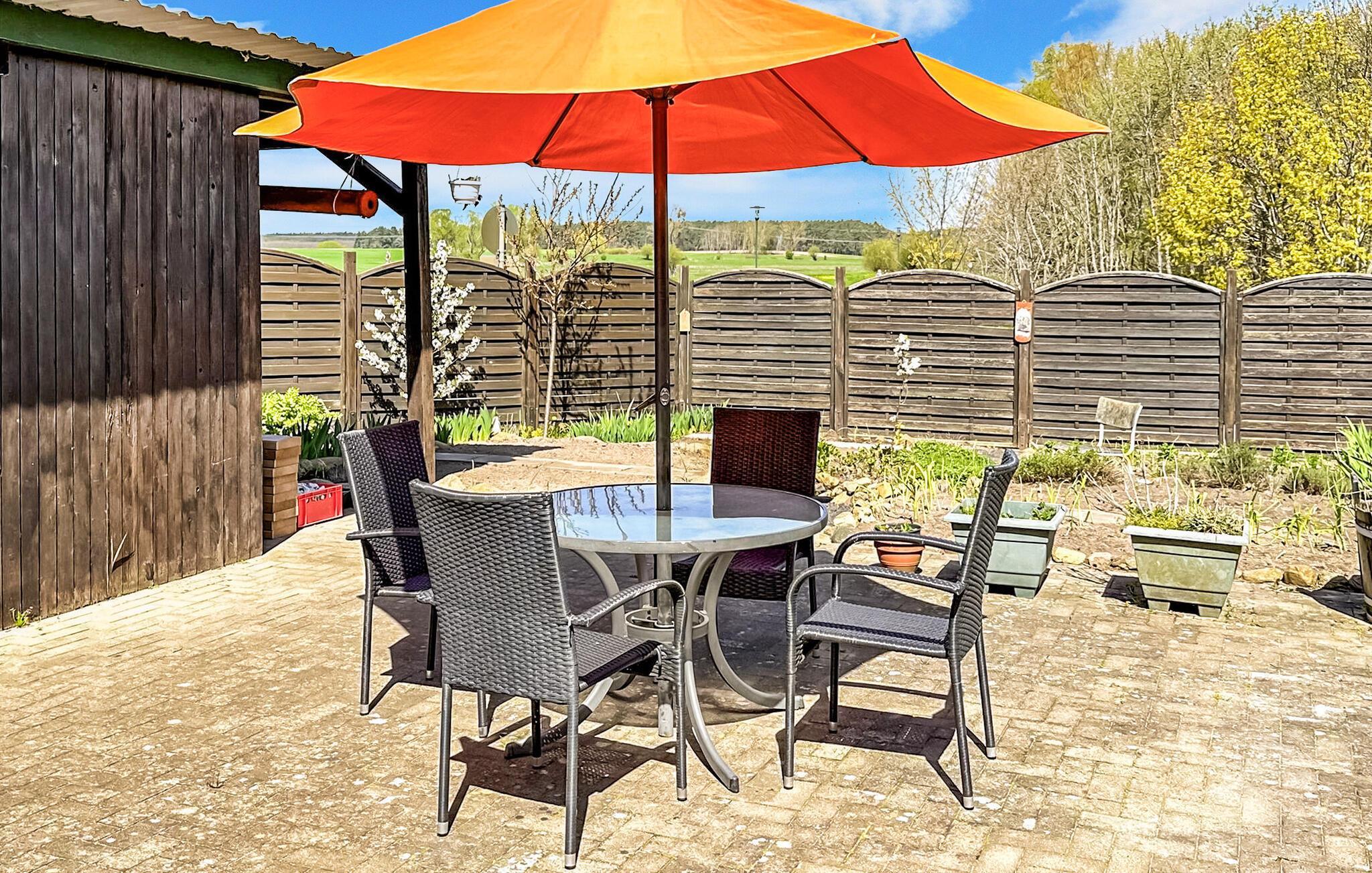 Den 80 kvm store ferieleiligheten for maks. 6 voksne og 2 barn (opp til 12 år) ligger separat i første etasje i et bolighus på eierens ca. 1000 kvm store boligeiendom bare 250 m fra Fleesensee. Et naturlig badeområde og en brygge med båtplasser kan nås etter ca. 600 meter. Leiligheten er barrierefri og tilgjengelig for funksjonshemmede. Leiligheten har stue/spisestue (polstrede møbler med sovefunksjon, spisebord, flatskjerm-TV, DVD, feriebibliotek), åpen og fullt utstyrt kjøkkenkrok (elektrisk komfyr med stekeovn, kjøleskap med frysedel, oppvaskmaskin, spisebord, diverse kjøkkenutstyr), soverom med dobbeltseng, soverom (dobbeltseng (1,40 m bred), sovesofa som ekstra seng, TV og peis) samt bad med dusj/WC. En barneseng og barnestol er tilgjengelig for små barn. Internett (W-LAN) er også tilgjengelig. Utenfor er det en møblert sittegruppe, grill, lekeplass, bordtennis, sykkeloppbevaring og parkeringsplass.