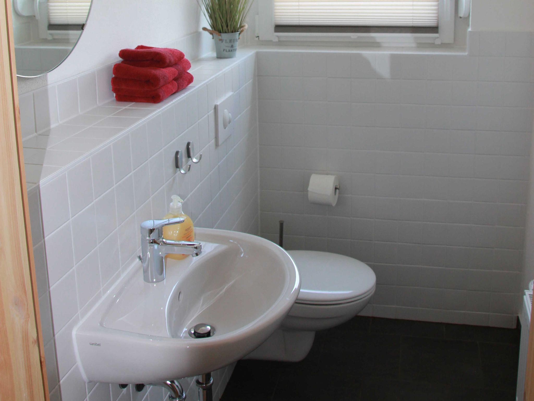Im separaten Gästebad gibt es ein WC und ein Waschbecken.