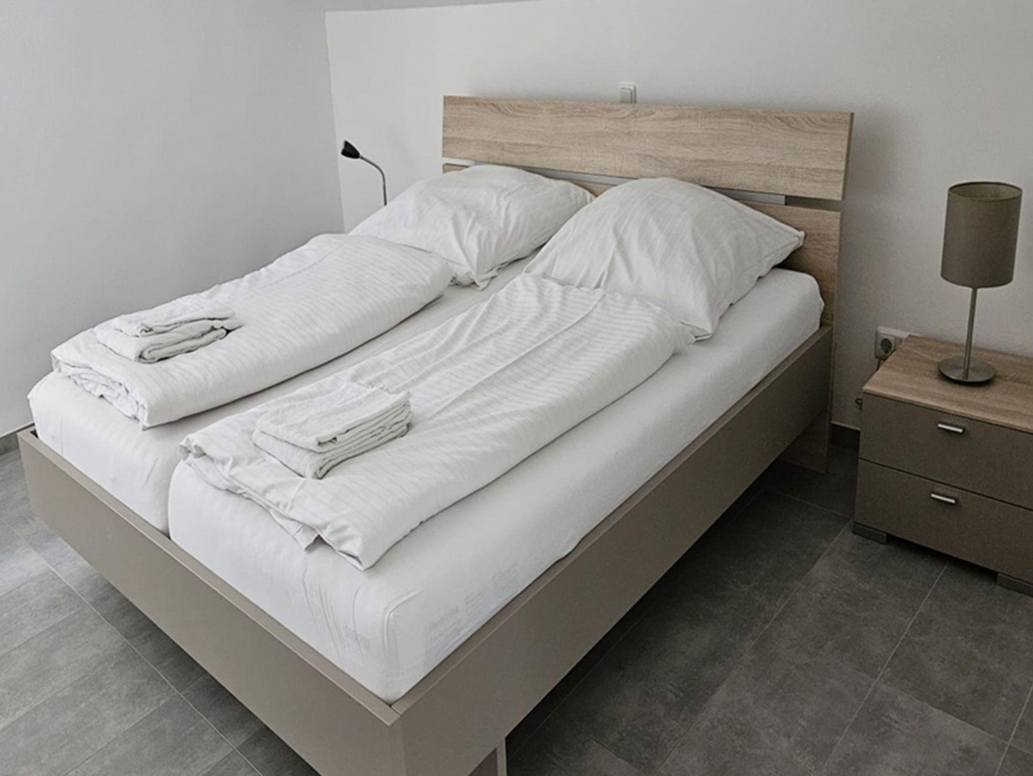 Die Wohnung verfügt über 2 Schlafzimmer. Ein Zimmer ist mit einem Doppelbett (180x200) ausgestattet; das zweite Schlafzimmer bietet ein Einzelbett (90x200).