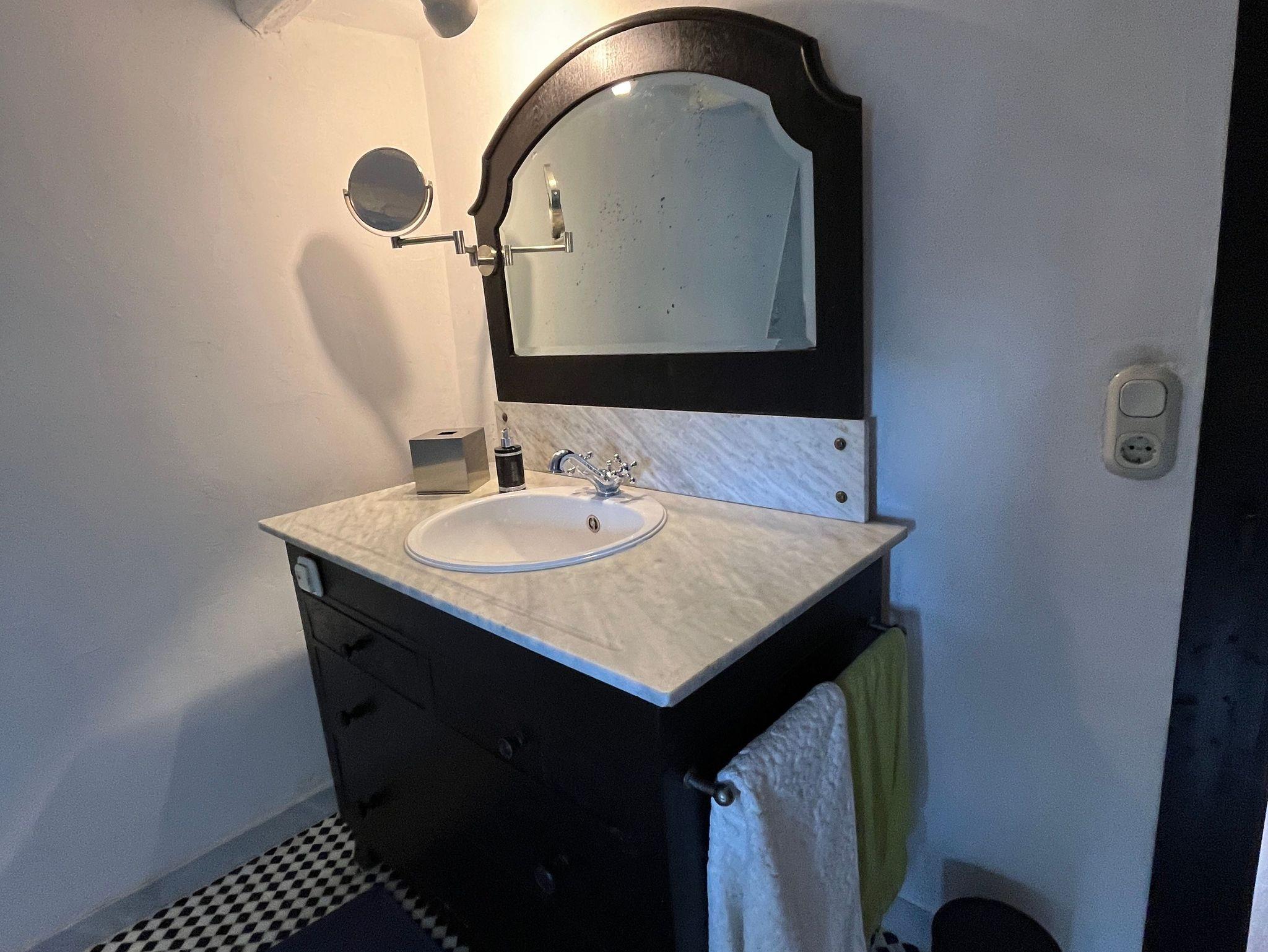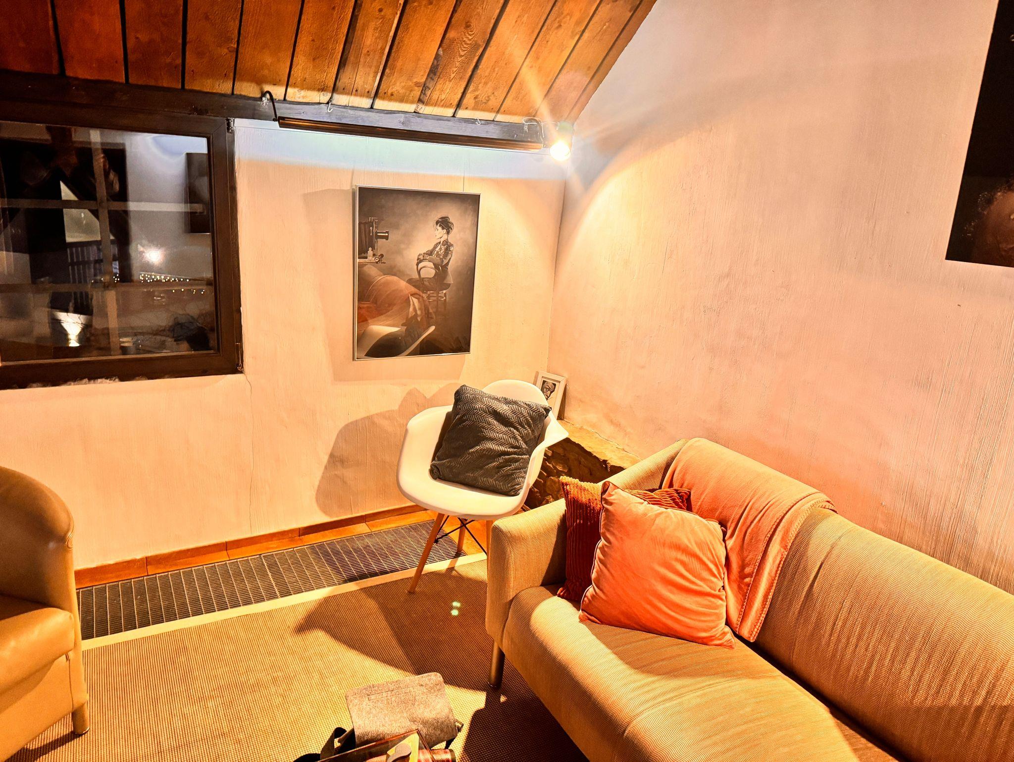 Im Erdgeschoss liegen das erste Esszimmer, die Küche, die Wein-/Kaffee-Chillout-Lounge, die Diele mit historischer Feuerstelle, an der früher gekocht wurde, der erste Lesebereich und das Natursteinbad mit Badewanne.