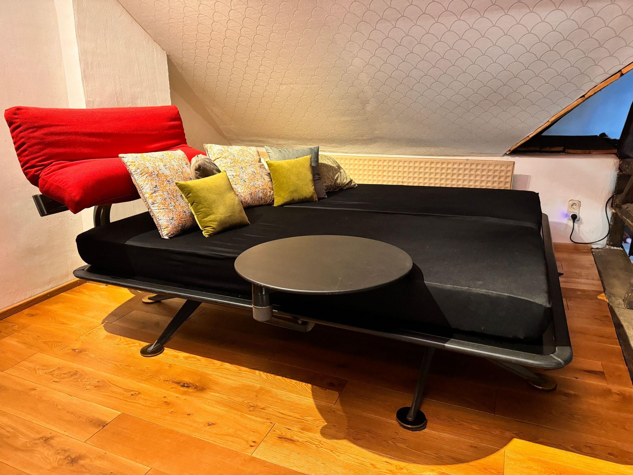 Über eine historische Wendeltreppe geht’s hinauf in die 2.Etage mit dem großen Schlafzimmer und auch der offenen Empore mit einem „B und B Italia-Designer-Futon-Bett“. Lesen, relaxen, oder auch schlafen - entscheiden Sie selber.