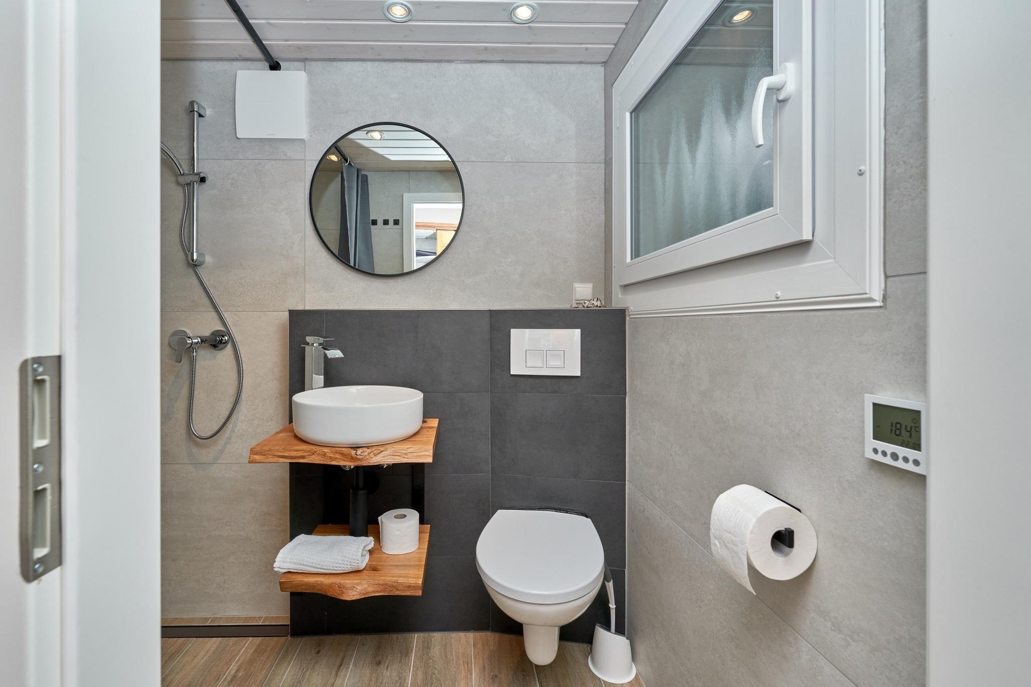 Familien oder Freunde. Das moderne Duschbad mit WC rundet den komfortablen Innenbereich ab und sorgt