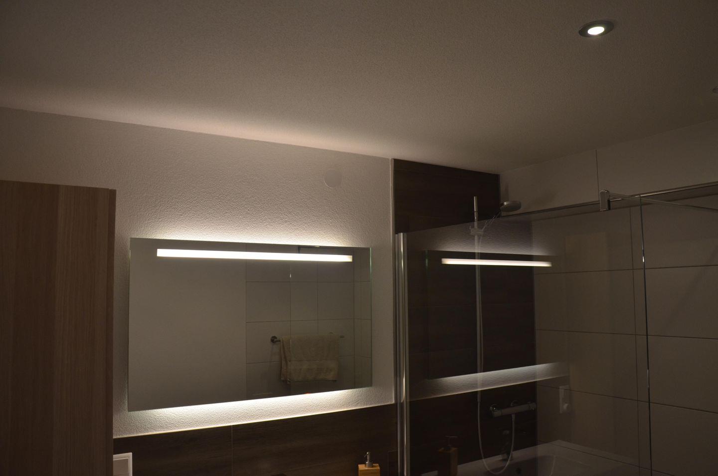 Das Badezimmer setzt ebenfalls Maßstäbe mit hochwertigen Fliesen in Holzoptik, einer bodenebenen Dusche mit Glas-Trennwand, einem eleganten Waschtisch mit beleuchtetem Spiegel und einem WC. Im separaten Schlafzimmer erwartet Sie ein großzügiges Doppelbett und ein geräumiger Kleiderschrank.
