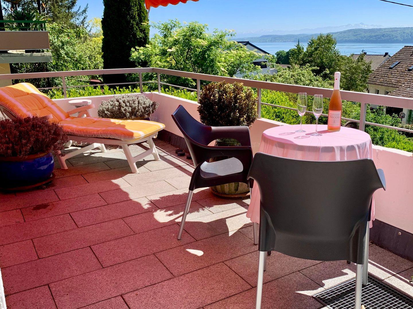Panorama-Seeblick und Familienfreude: Die Ferienwohnung La Terrasse bietet nicht nur eine komfortable Unterkunft, sondern auch eine perfekte Ausgangsbasis für Aktivitäten und Ausflüge rund um den Bodensee. Das Highlight der Ferienwohnung ist die großzügige und privat gelegene 12 Quadratmeter Terrasse, die einen atemberaubenden Panorama-Seeblick bietet. Der lichtdurchflutete Wohnbereich ist mit bequemen Polstermöbeln ausgestattet und bietet einen direkten Zugang zur Terrasse. Die separate Küche bietet alles, was Sie für die Zubereitung köstlicher Mahlzeiten benötigen.