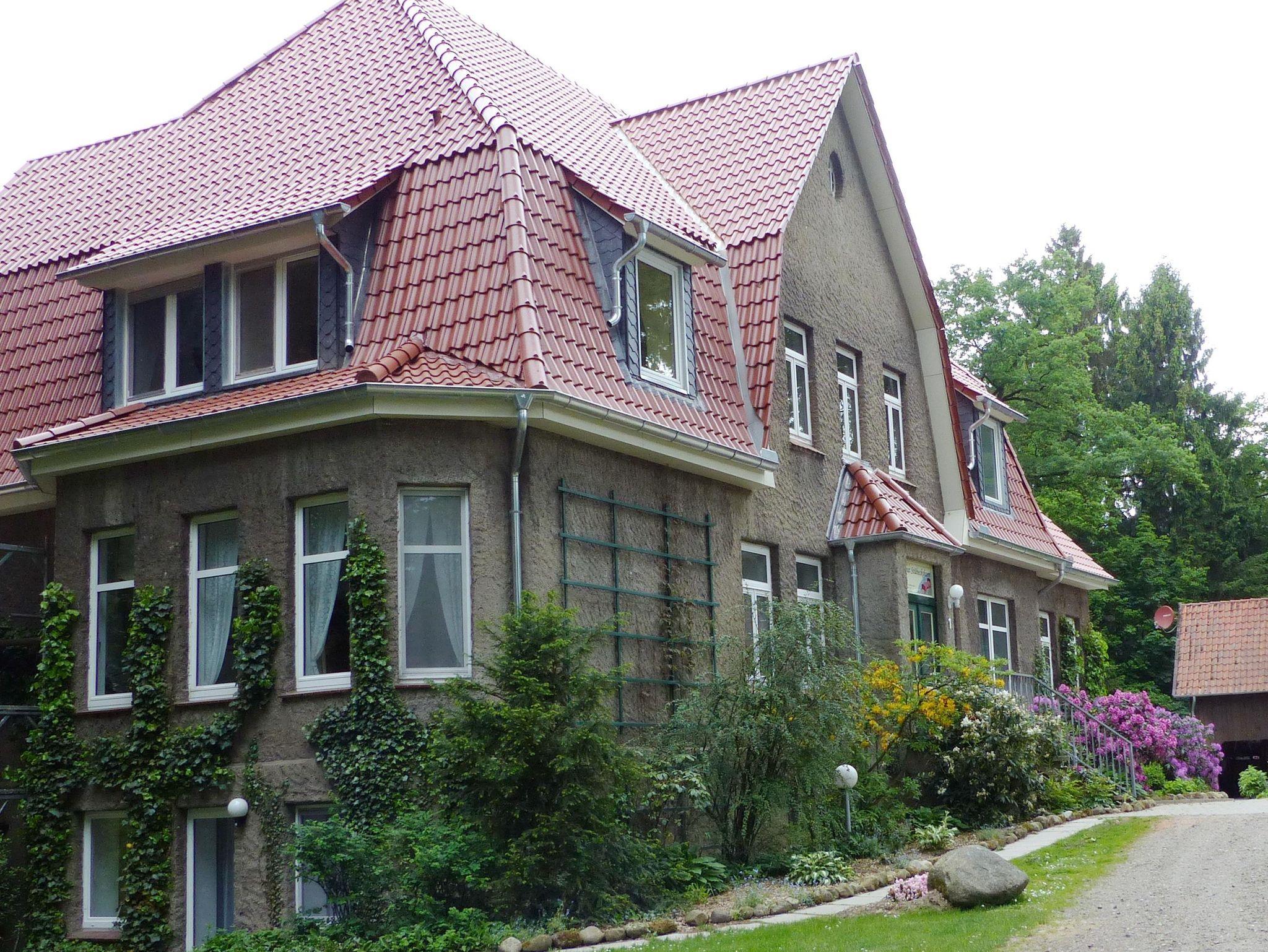 Das Forstgut liegt verkehrsgünstig in ruhiger idyllischer Einzelhoflage unter schönen alten Bäumen im Soltauer Ortsteil Stübeckshorn.
