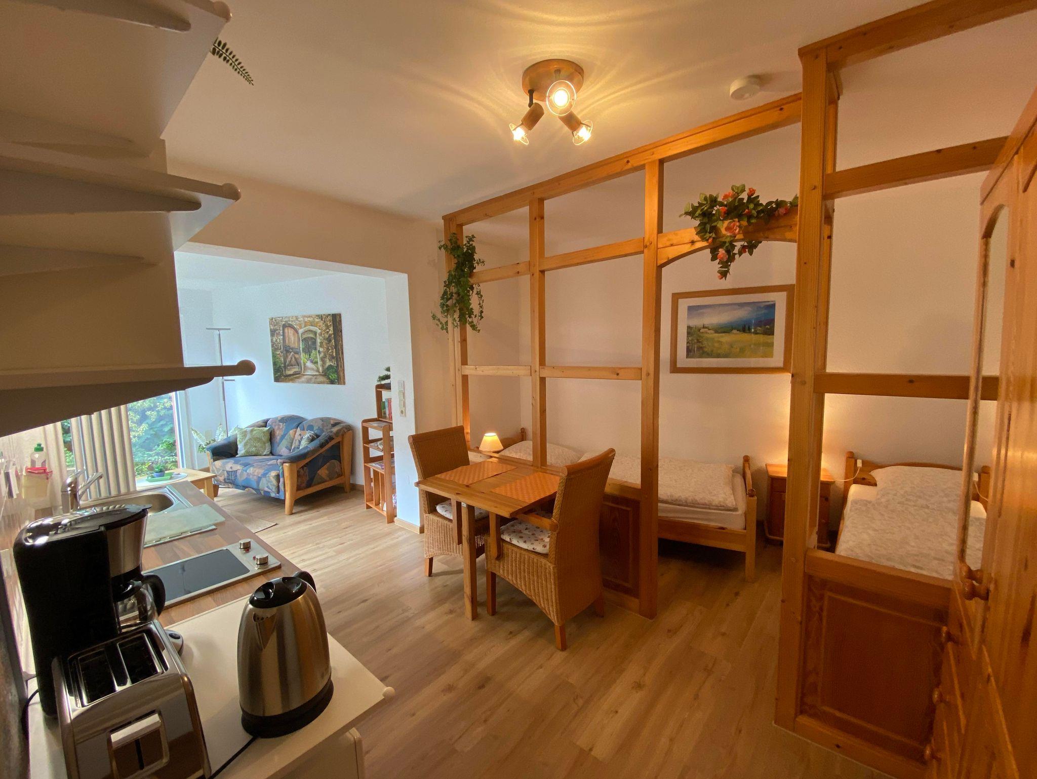 2 Einzelbetten (Zustellbett möglich), Kinderzustellreisebett und Kinderhochstuhl bei Bedarf vorhanden;