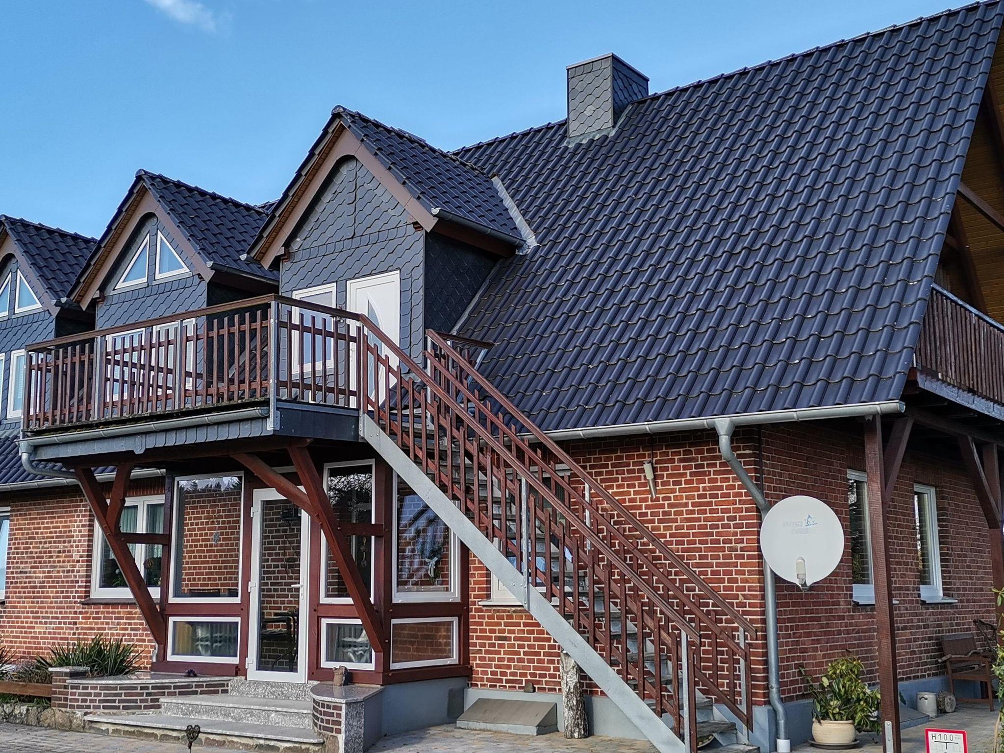 Großzügige Ferienwohnung auf dem Land. Unsere helle und freundliche Ferienwohnung (Bj. : 2009) befindet sich im Dachgeschoss, verfügt über eine moderne Einrichtung und bietet mit 130 m² auch Familien viel Raum zum entfalten. Durch die ländliche, aber zentrale Lage in Woltem (10 Km bis Soltau), sind Sie mit dem Auto in 20 Minuten bei allen bekannten Ausflugszielen der Region und können den Abend in Ruhe ausklingen lassen. Der große Süd- Balkon oder die überdachte Loggia laden zum sitzen an der frischen Luft ein. Zentraler Ort der Wohnung ist das große Wohnzimmer. Hier befinden sich der Esstisch und die Fernsehecke. Die offene Küche ist voll ausgestattet. Im angeschlossenen HWR sind Waschmaschine und Trockner vorhanden. Das große Vollbad verfügt über 2 Waschtische, Rainshower- Dusche ,Eckbadewanne und WC. Das kleine Bad verfügt über 1 Waschbecken und 1 WC. Elternschlafzimmer: 1 Ehebett (180/ 200) 1.Kinderzimmer: 1 Etagenbett + 1 Bett (je 90/200) 2. Kinderzimmer: 1 Bett (140/200)1-2 Pers