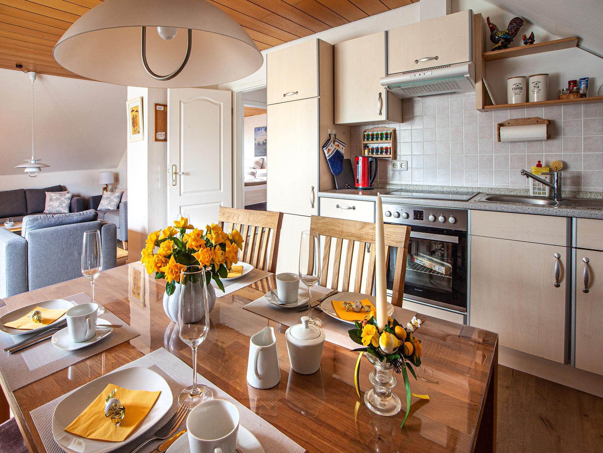 Ausstattung: 2 Personen: 65 qm, 1 Schlafzimmer,1 Bad, Wohn-mit Essbereich, voll eingerichtete Küchenzeile, Kabel-TV, Telefon-WLAN.