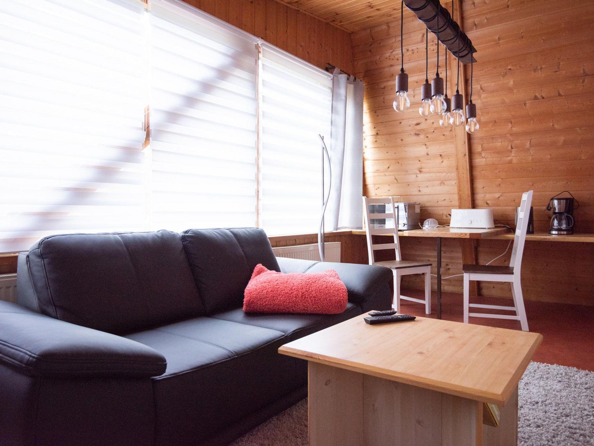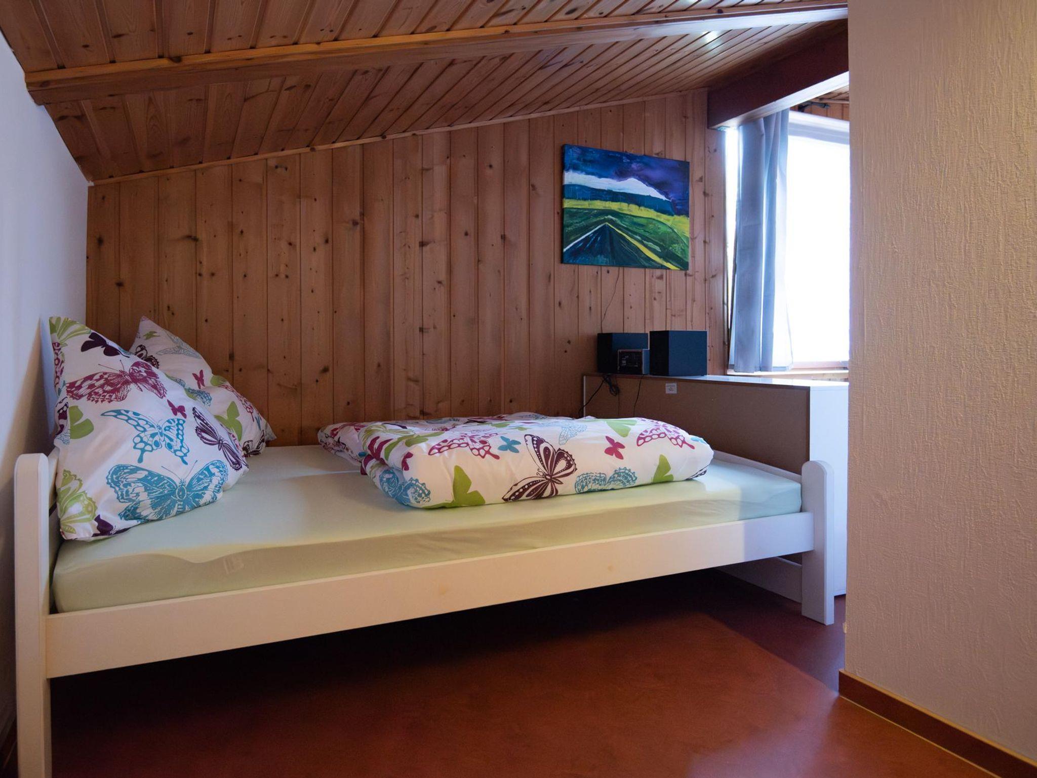 Das lichtdurchflutete Apartment (30 qm) mit Duschbad und Küchenzeile befindet sich in der ersten Etage des Hauses. Es gibt einen abgetrennten Schlafbereich mit Doppelbett (ein Bett, zwei Matratzen).