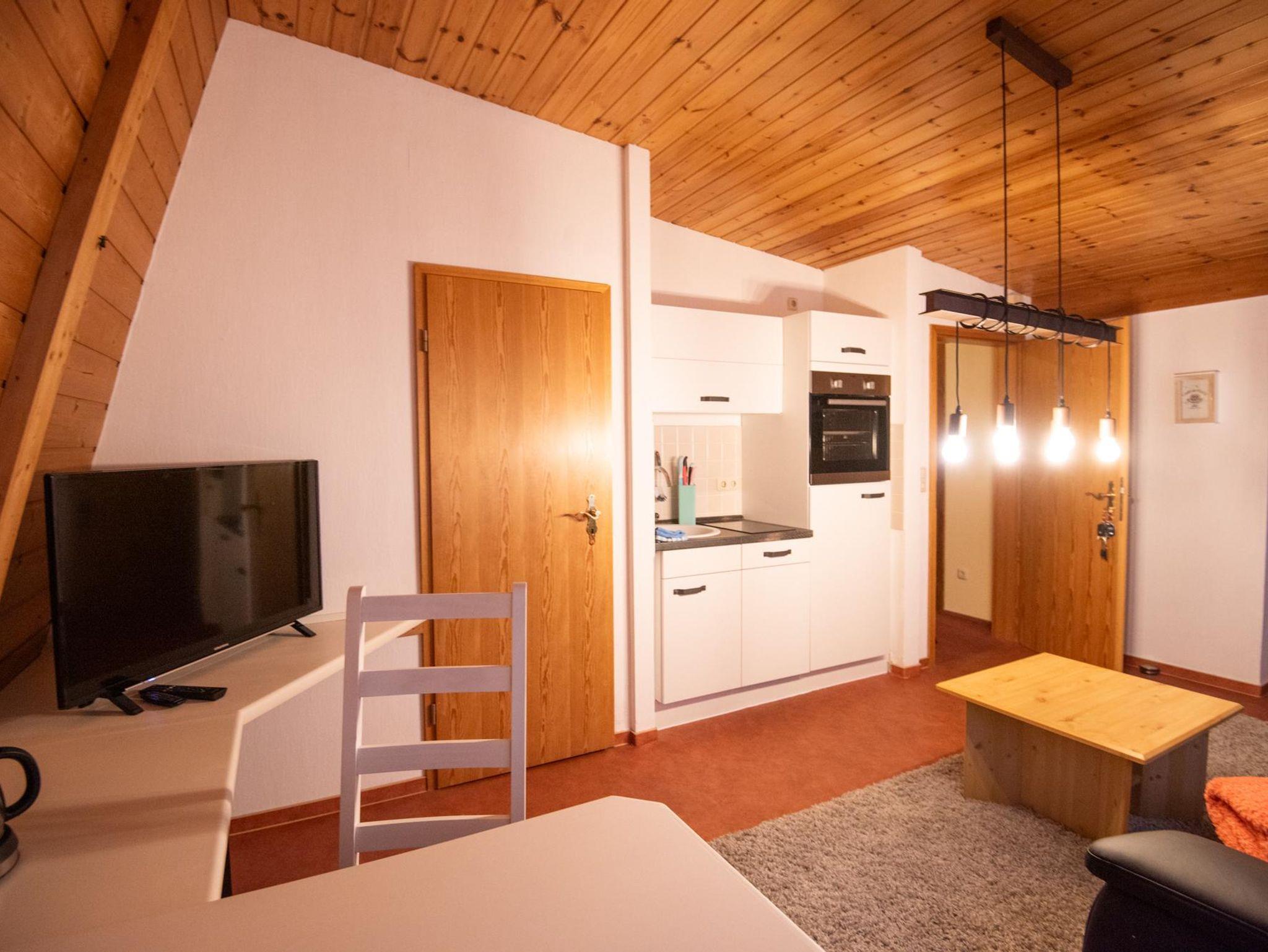 Zur Ausstattung gehören u.a. TV, Radio, WLAN, Kühlschrank, Kaffeemaschine, Wasserkocher, Mikrowelle und Geschirr. Ein PKW Stellplatz (im Carport) und eine kleine Terrasse stehen ebenfalls zur Verfügung.