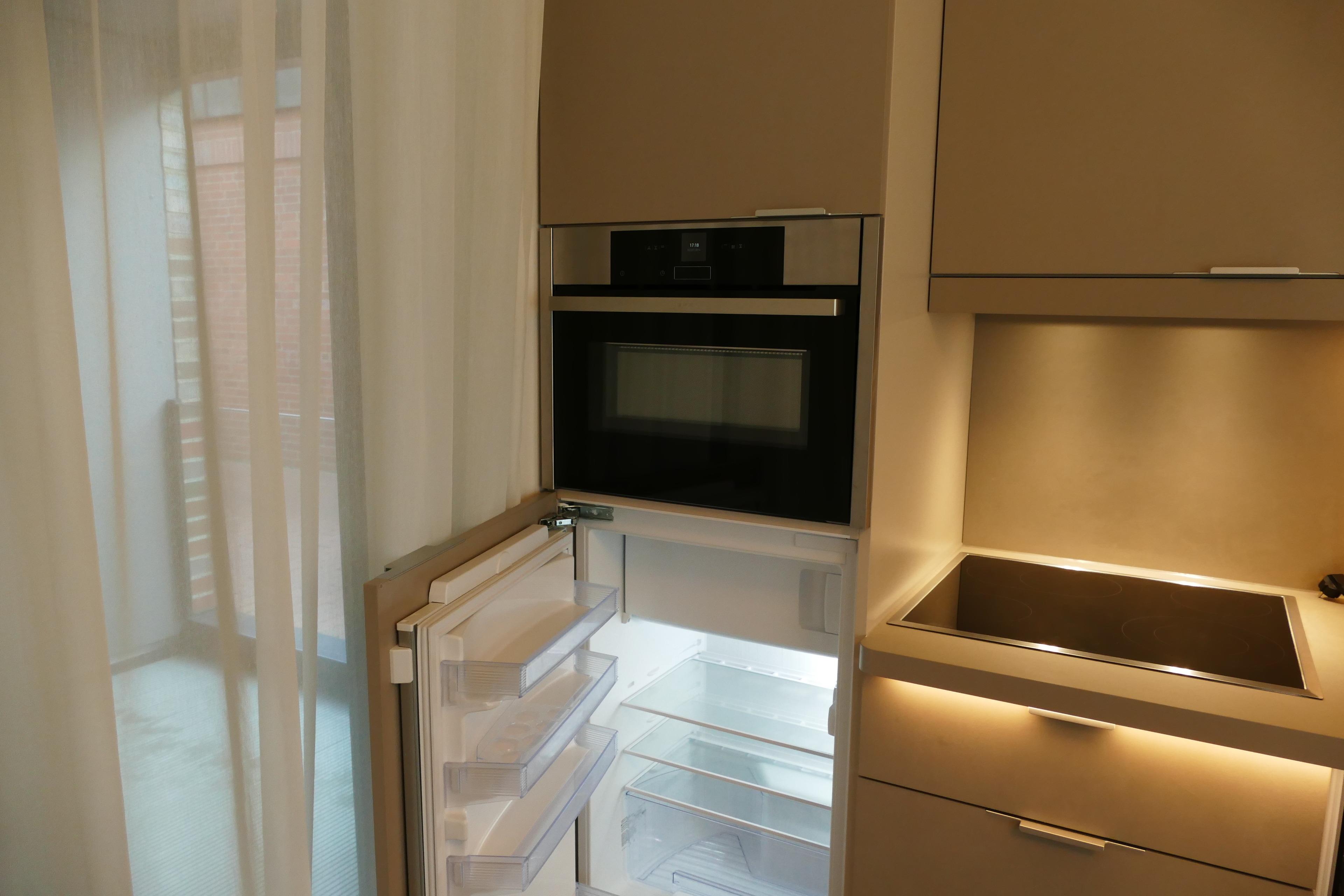 Der Balkon bietet frische Luft und Entspannung direkt an Ihrer Unterkunft. In der gut ausgestatteten Küche finden Sie neben einem Kühlschrank auch eine Mikrowelle und einen Backofen.