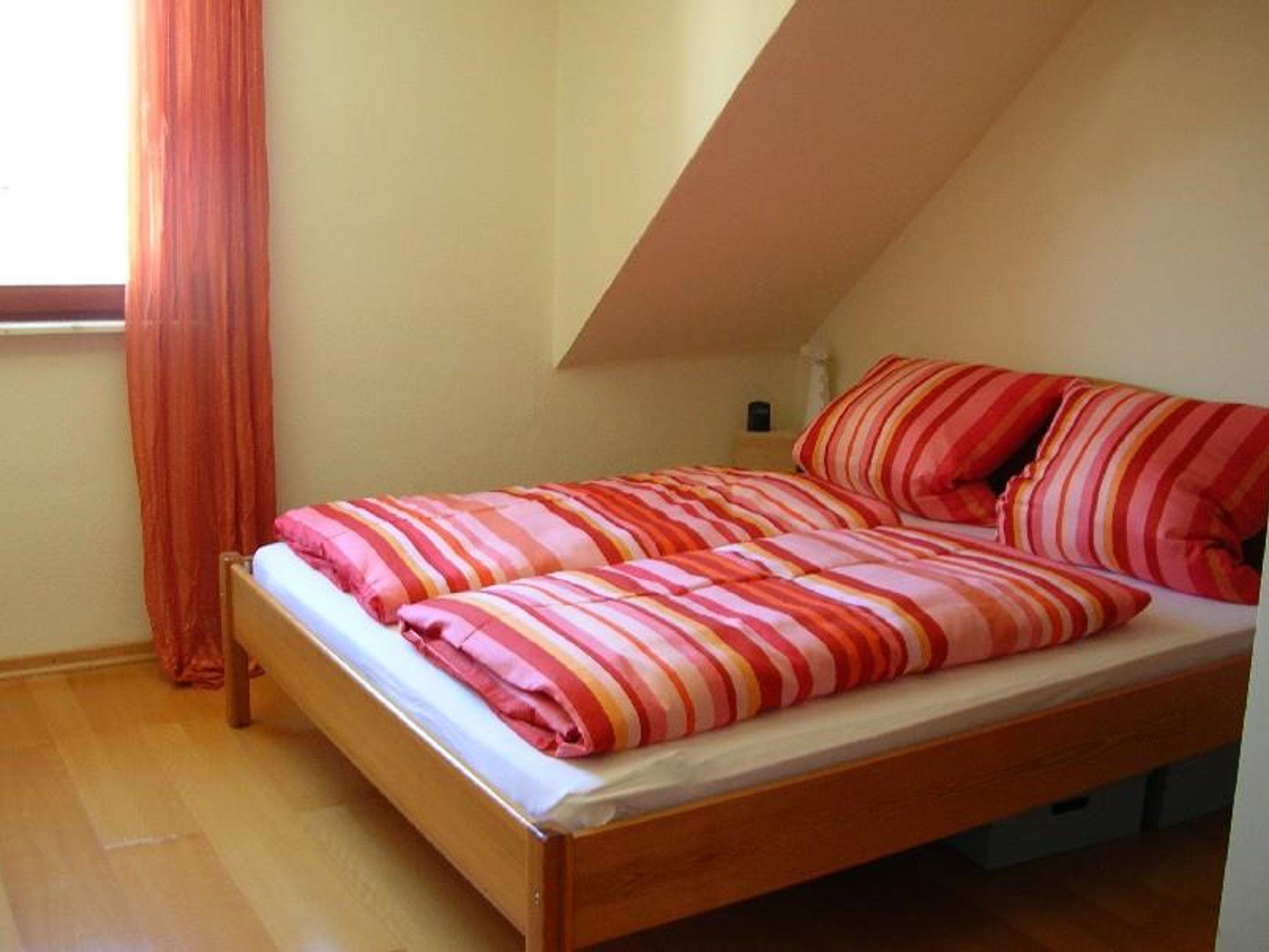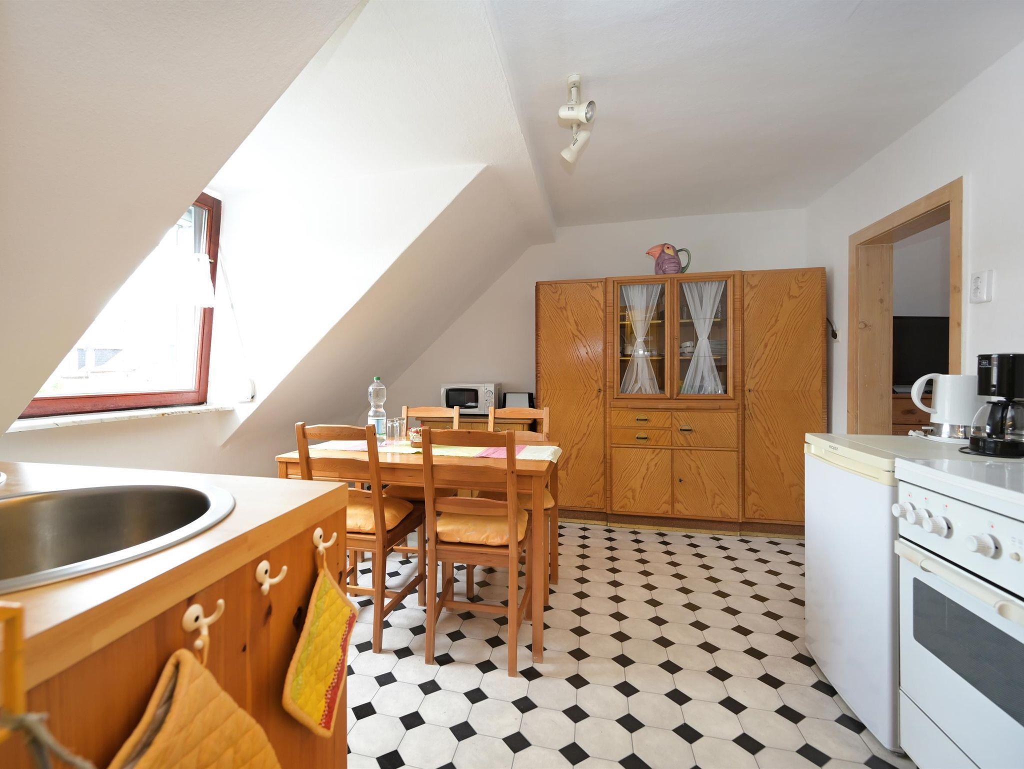 Das zweite Apartment liegt im Dachgeschoss und heißt mit Schlaf- und Wohnzimmer, Küche und kleinem Bad bis vier Übernachtungsgäste willkommen.