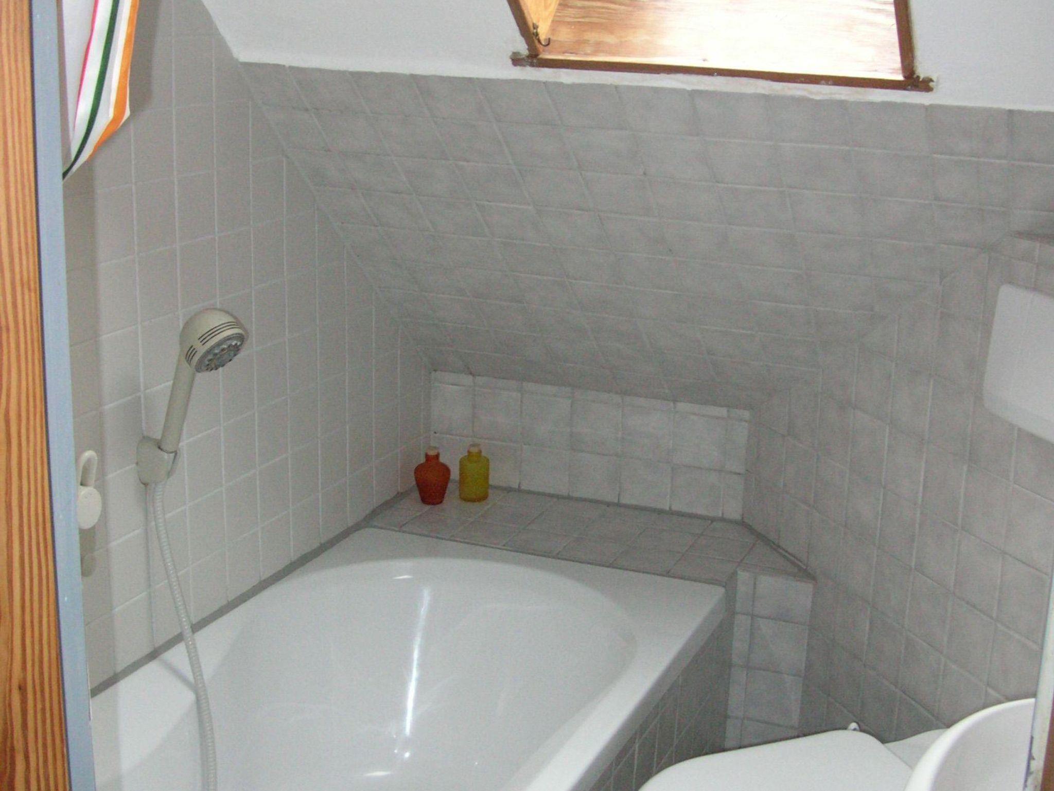 Bad der Dachgeschosswohnung sehr beengt, aber für Kurzaufenthalt durchaus