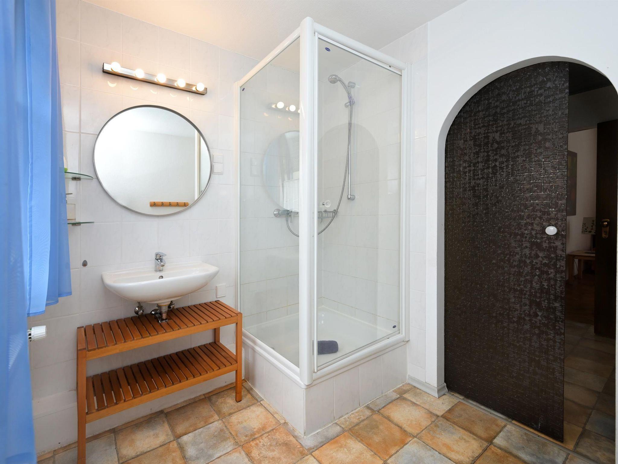 Bad der Dachgeschosswohnung sehr beengt, aber für Kurzaufenthalt durchaus