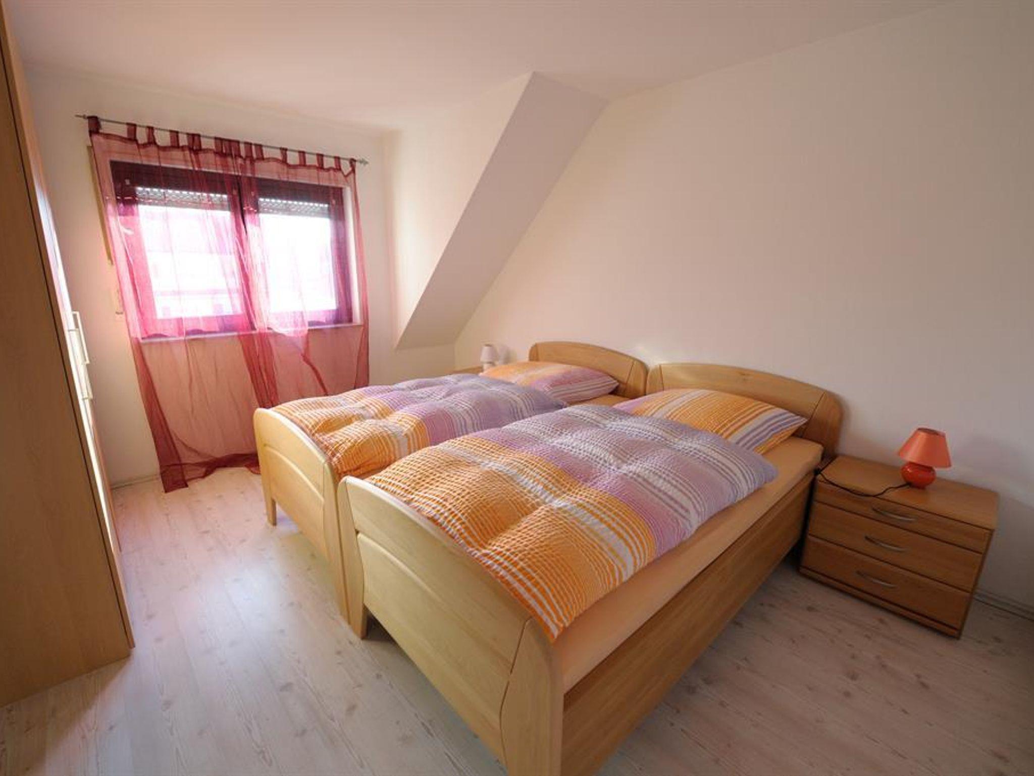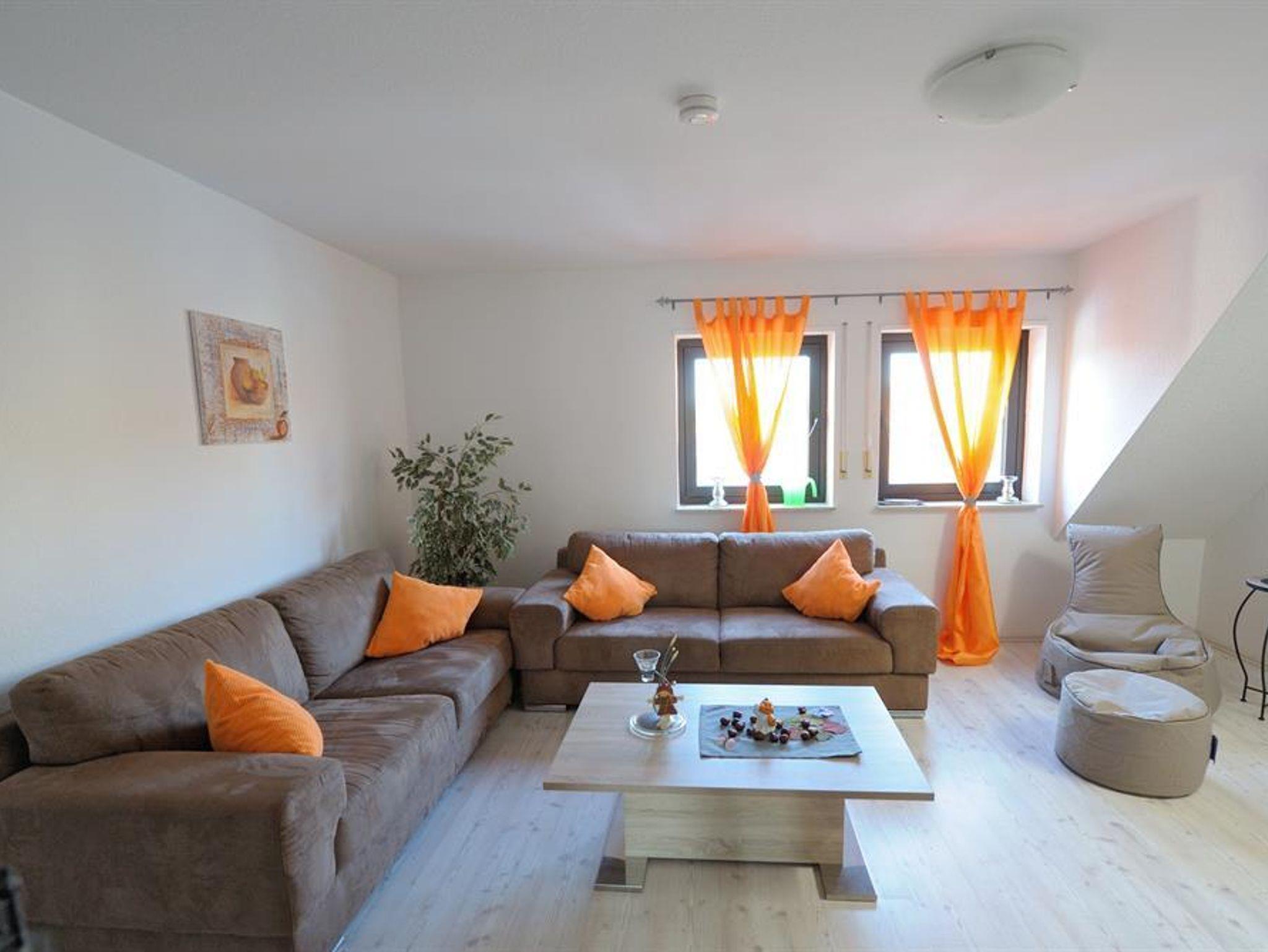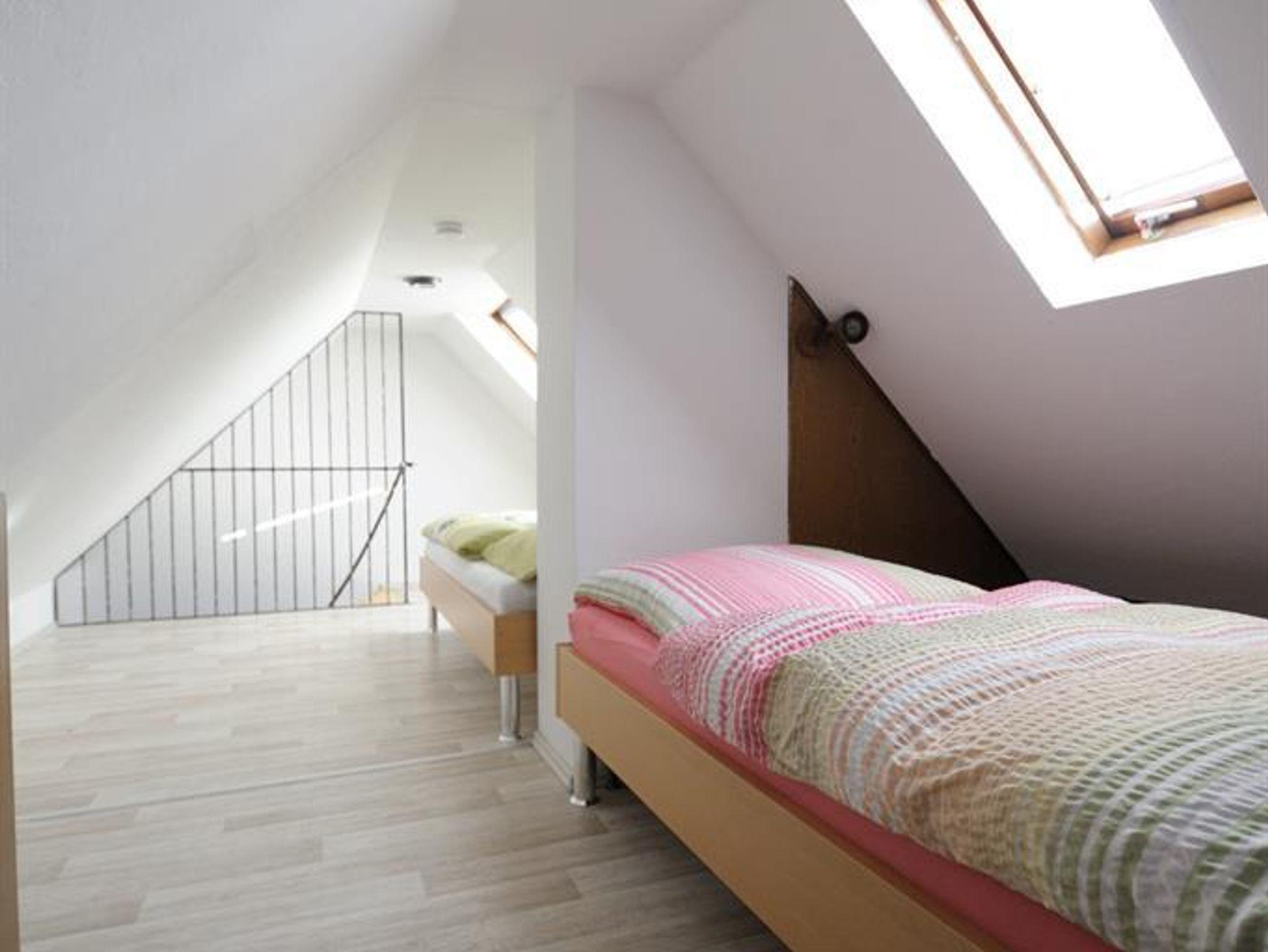 Die Maisonettewohnung befindet sich im 2.OG eines Mehrfamilienhauses. Die Wohnung verfügt über ein Schlaf Zimmer mit zwei Betten die auch zusammen geschoben werden können und einem Kleiderschrank, weitere zwei Betten stehen auf dem Spitzboden der Maisonettwohnung angrenzend an dem geräumigen Wohnzimmer. Im Wohnzimmer befindet sich ein Fernseher mit Kabel HD Premium Anschluss und ein kostenloser W-LAN Zugang steht Ihnen ebenfalls zur Verfügung. Die Küche verfügt über Esstisch mit 4 Stühlen, Spülmaschine, Backofen, E-Herd, Kaffeemaschine, Wasserkocher, Toaster uvm. Im Bad finden Sie ein WC, ein Waschbecken mit Spiegel und Leuchte, eine Badewanne. Ein Fön steht Ihnen selbstverständlich zur Verfügung. Ebenfalls sind Hand- und Badetücher vorhanden. Eine Belegung mit max. 4 Personen wird empfohlen, reisen Kinder mit, so kann eine 5. Person untergebracht werden. Hunde sind erlaubt.