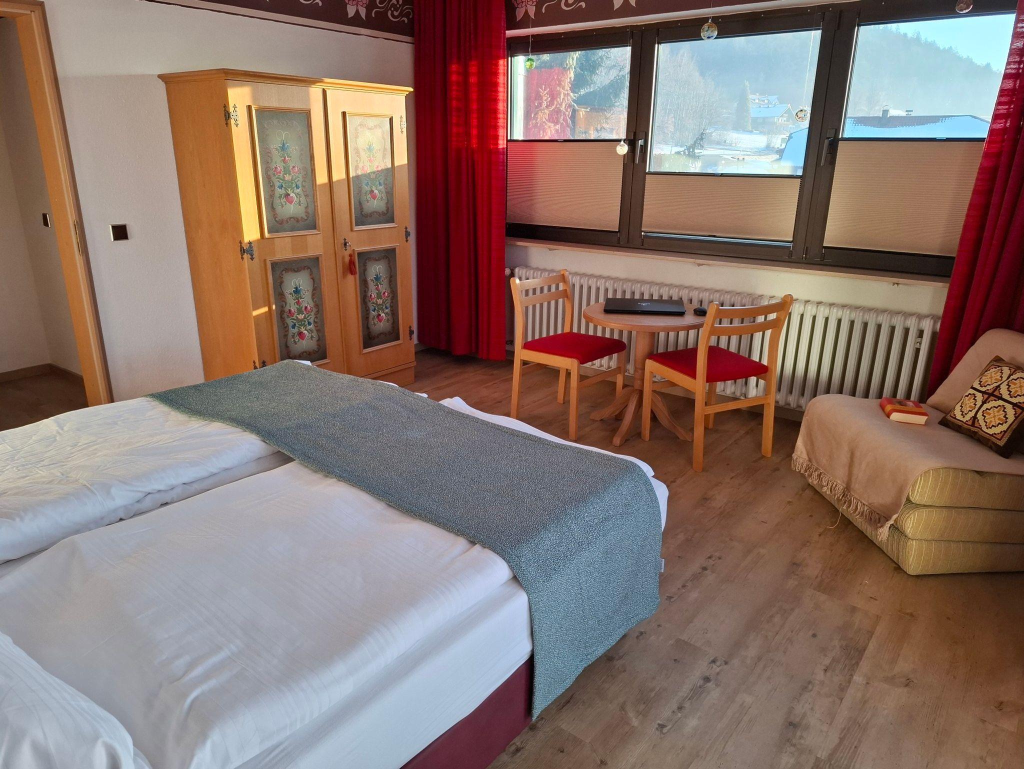 Geeignet für Wandergruppen, Vereine oder Familientreffen bietet unser Gästehaus 10 Doppelzimmer für bis zu 21 Personen. Alle Zimmer verfügen über ein eigenes Bad mit Dusche und WC und befinden sich im ersten Obergeschoss des Hauses. Bei sieben Zimmern ist außerdem ein Balkon mit Aussicht ins Tal vorhanden.