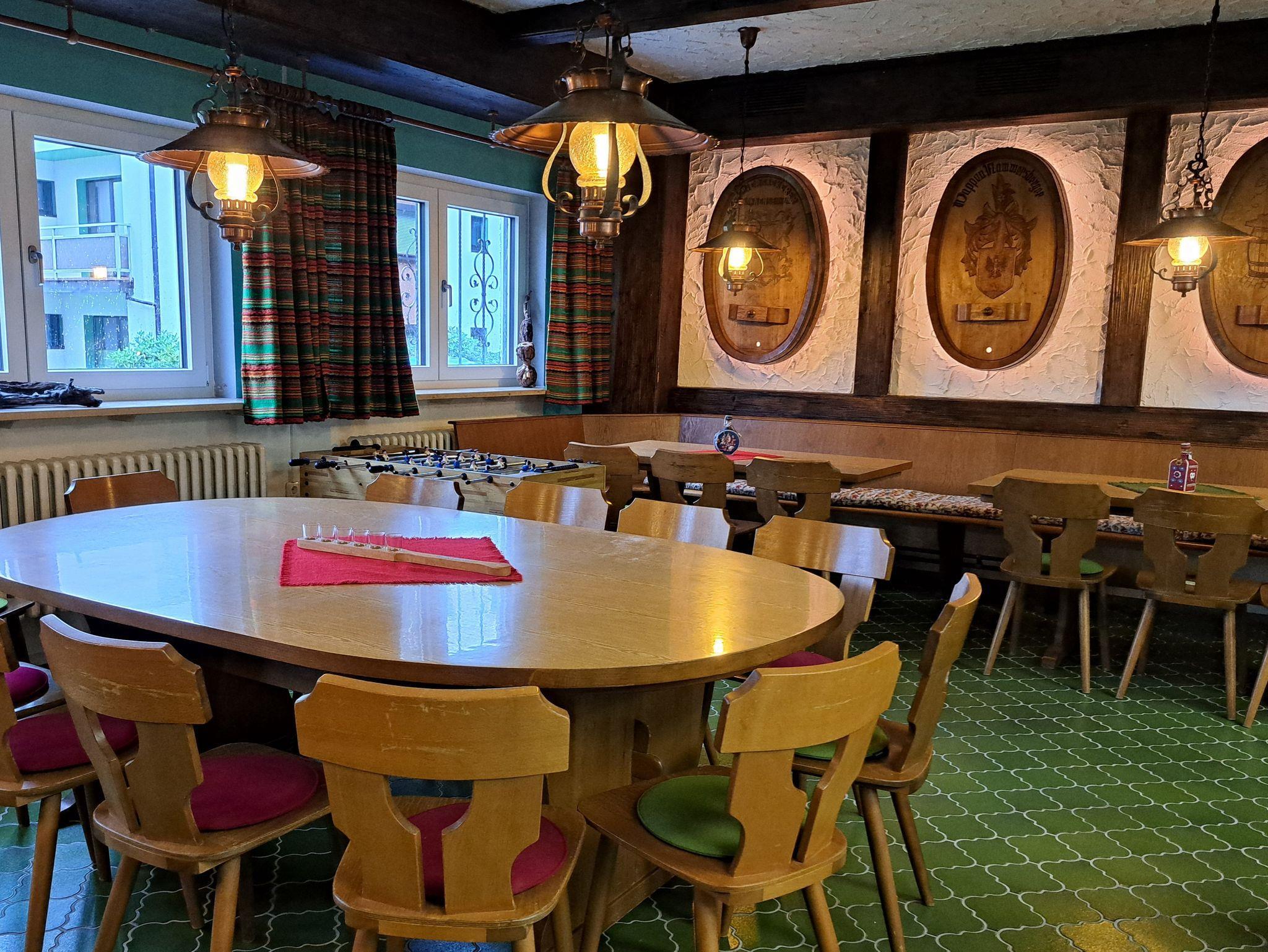 An die Küche anschließend befindet sich ein großer Gemeinschaftsraum. Zusätzlich bieten wir eine Kegelbahn, eine Tischtennisplatte, einen Tischkicker, einen großen Fernseher, eine Dartscheibe, sowie diverse Familienspiele.