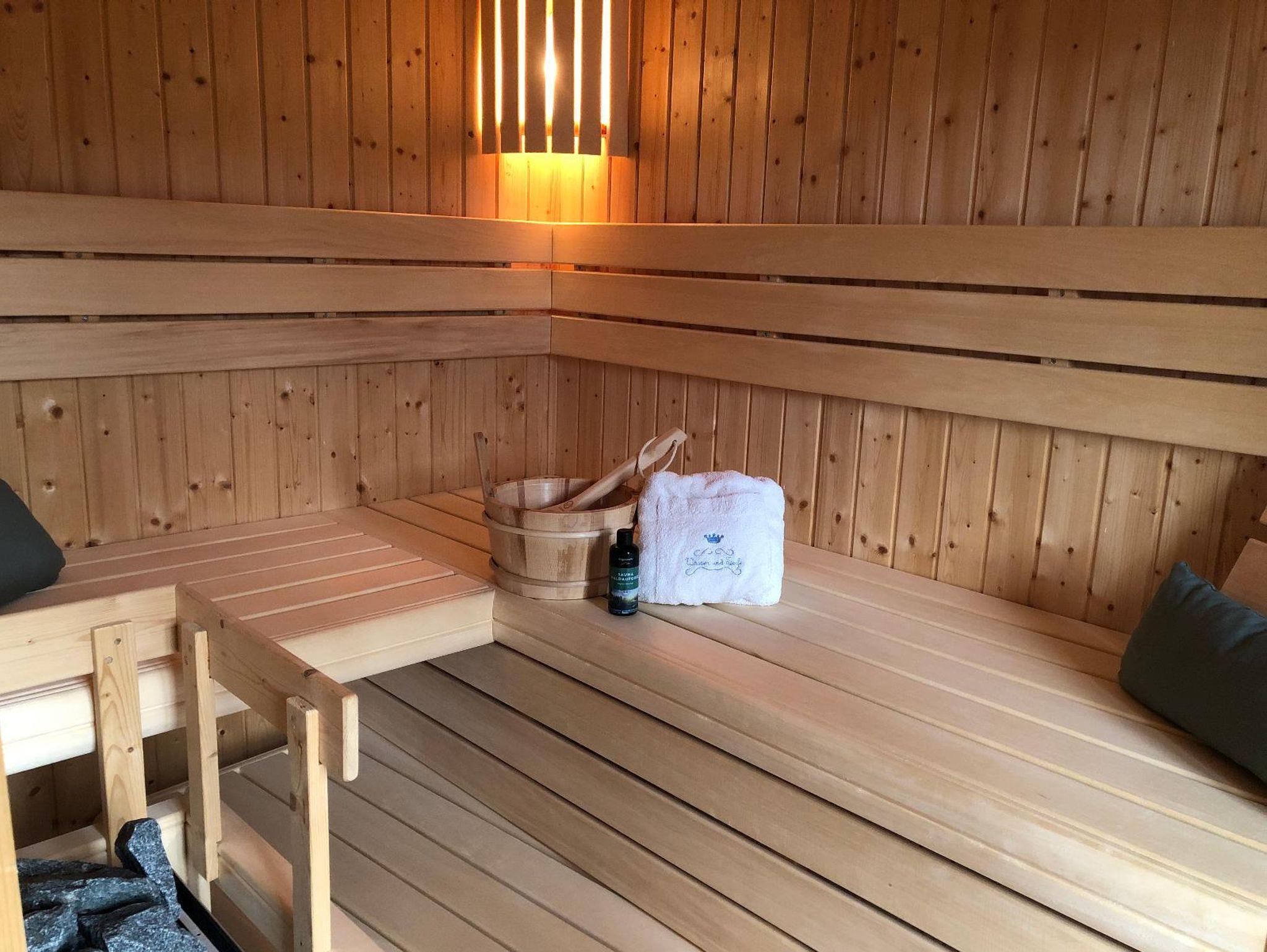 Ab August 2021 steht für unsere Gäste eine neue Sauna bereit mit eigenem Duschbad und Ruheraum.