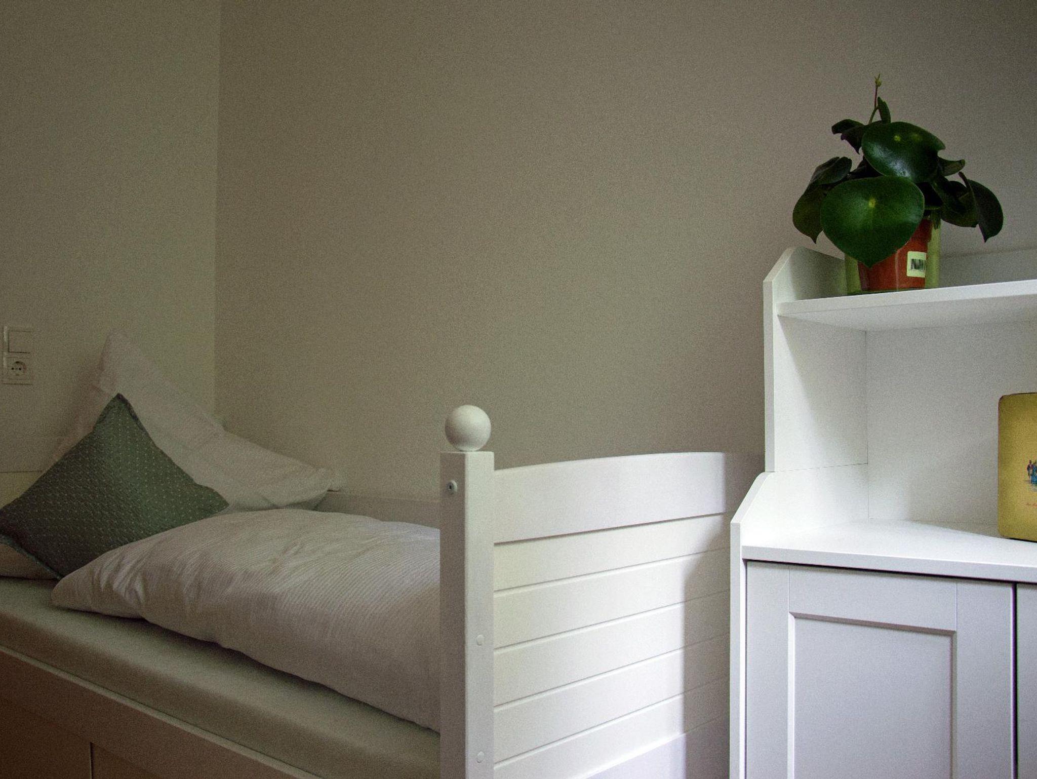 Die Wohnung „Luisenfels“ ist mit einem Schlafzimmer mit Boxspring-Doppelbett (180 x 200 cm), einem weiteren Schlafzimmer mit 2 Einzelbetten (100 x 200 cm) und einem kleinen Gästezimmer mit einem Bett (80 x 180 cm) ausgestattet. Selbstverständlich steht Ihnen frische Bettwäsche zur Verfügung.