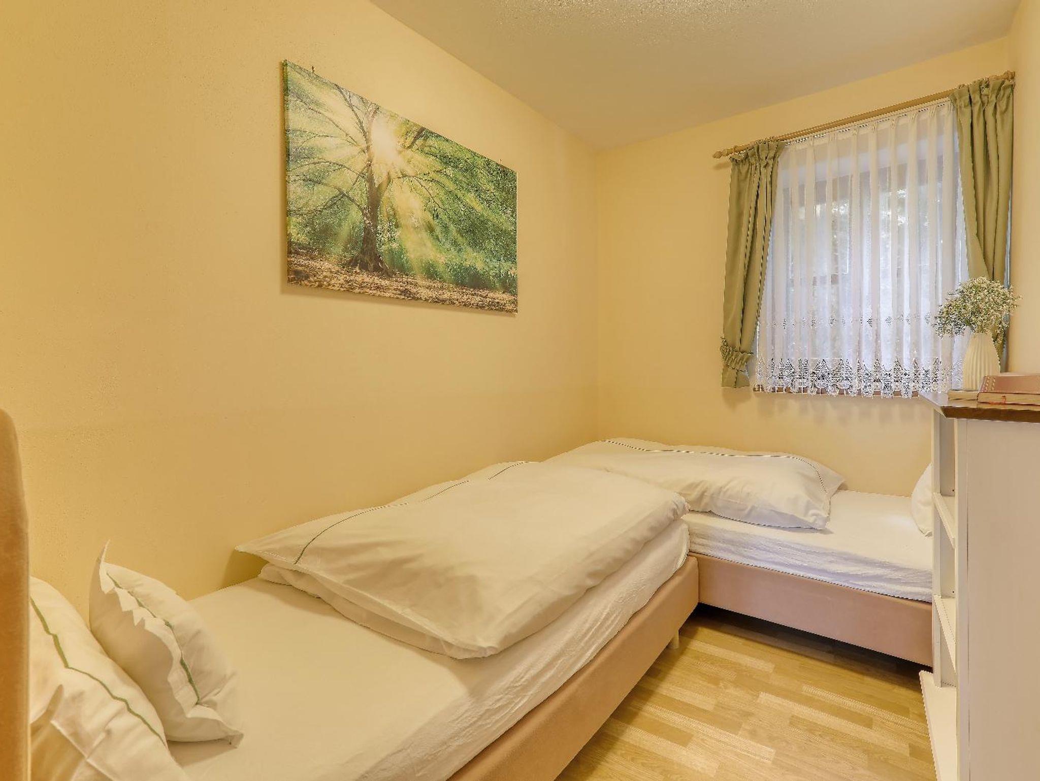 „Lusen“ ist unser größtes Apartment. Hier können bis zu 6 Personen übernachten. Das Schöne ist das man fast keine Treppen steigen muss, da es sich in der Eingangshöhe befindet. Sie finden hier einen wunderdschönen Kachelofen für gemütliche Winterabende und eine große Terrasse mit Zutritt vom Wohn –und Schlafzimmer. Sie werden das kombinierte, offene Design zwischen Küche, Wohn- und Essecke lieben. Viele Fenster mit freundlichen Vorhängen geben einem das Gefühl von Sommerbriese. Die Küche bietet alles was Sie benötigen. Einbauherd und –ofen, Kühlschrank, Geschirrspüler, Spülbecken und Abzugshaube. Morgens weckt Sie die Sonne in Ihrem Schlafzimmer mit Doppelbett. Danach können Sie auf Ihrer Terrasse frühstücken. Zwei Kinder schlafen im extra Schlafzimmer mit 2 Einzelbetten. Zwei extra Schlafgäste können auf dem Ausziehsofa mit Lattenrost und Matratze schlafen. Glücklicherweise gibt es ein separates WC mit so vielen Gästen. Im Badezimmer finden Sie 2 Waschbecken, eine Wanne und extra Dusche.