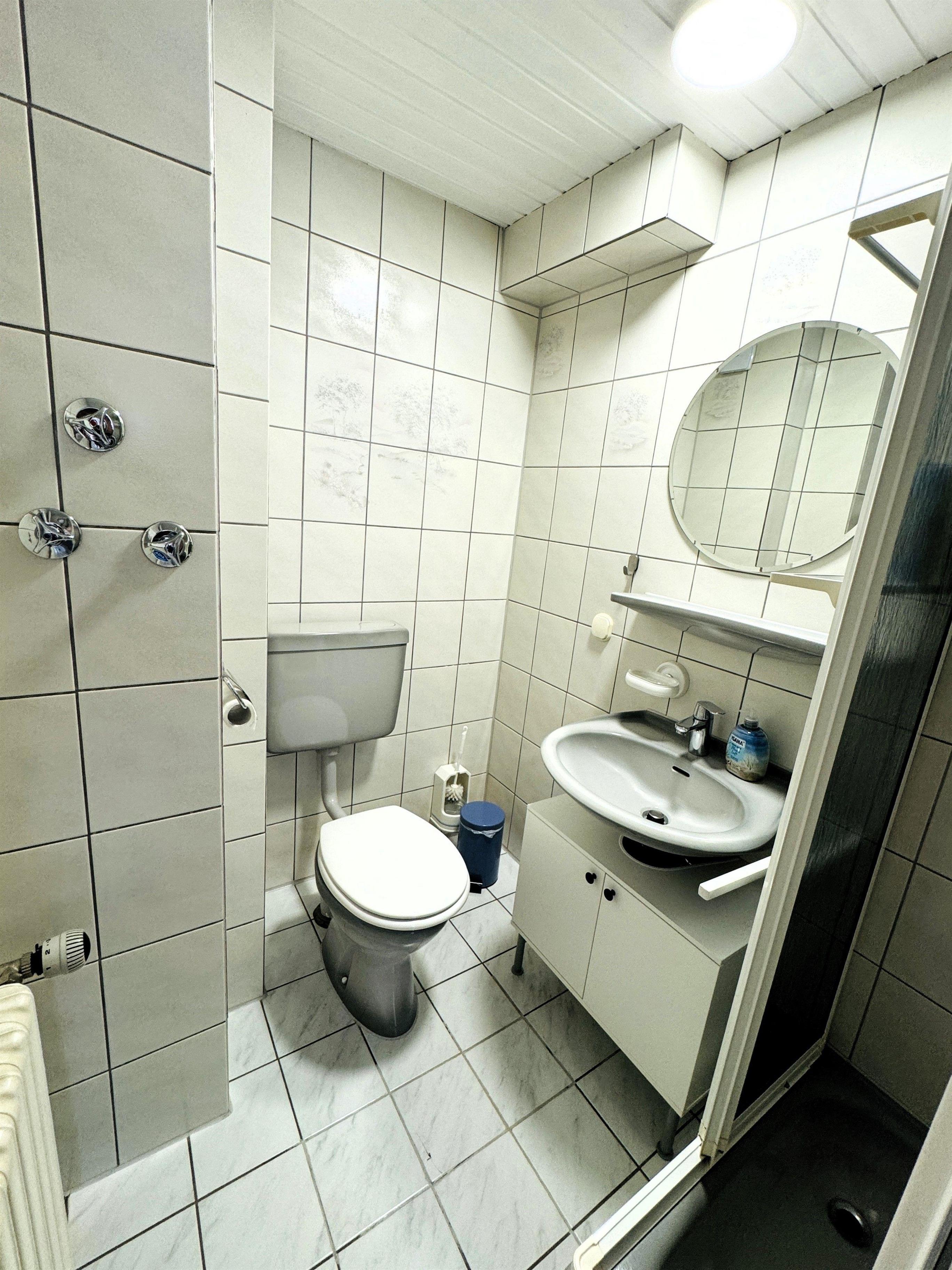 Bad: Im Badezimmer mit Dusche, Waschbecken und WC steht auch ein Haartrockner zur Verfügung.