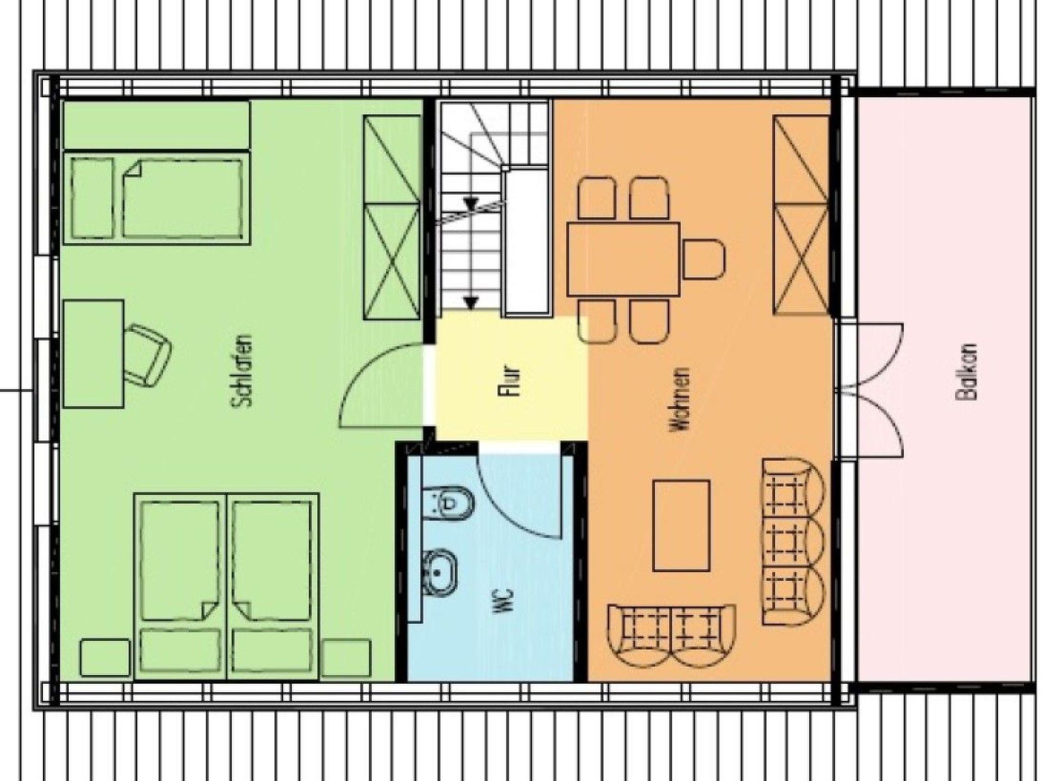 Relax, unwind and switch off from everyday life in our WOHLFÜHL chalets with their own whirlpool. On the ground floor there is 1 bedroom with double bed, large, very cosy living area with kitchen, dining area, living area, bathroom with shower/WC, terrace with whirlpool. On the 1st floor there is also a large, cosy living area with balcony, 1 bedroom with double bed and single bed, separate WC.