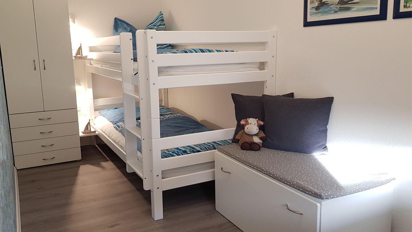 Es stehen zwei voneinander getrennte Schlafzimmer mit Insektenschutzgittern zur Verfügung. In dem einen Schlafzimmer gibt es ein Doppelbett, in dem anderen zwei Einzelbetten als Hochbett. In beiden Schlafzimmern sind selbstverständlich Schränke für Ihre Urlaubsgarderobe vorhanden. Im Wohnzimmer besteht die Möglichkeit, die Couch als Schlafcouch für z.B. eine 5. Person zu nutzen.