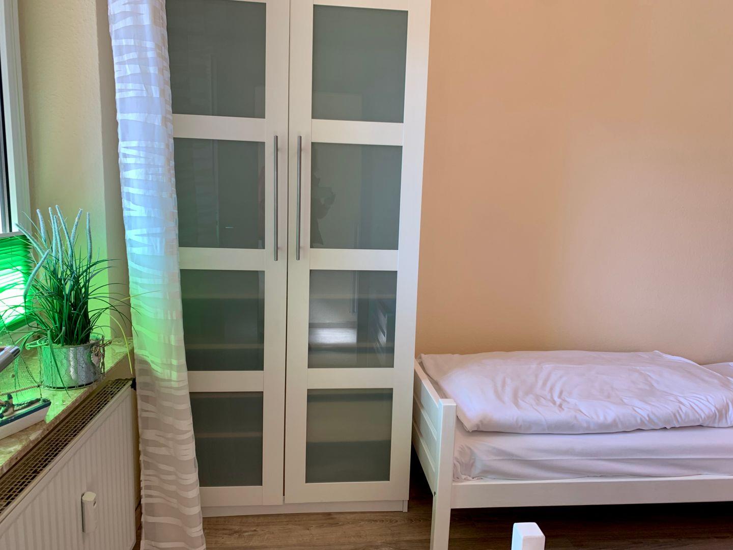 Zentrale, allergikerfreundliche 2-Zimmer Wohnung im 1. OG für bis zu 4 Personen. 1 Schlafzimmer mit 2 Einzelbetten, Wohnraum mit Schlafsofa und Küchenzeile, Duschbad mit WC,