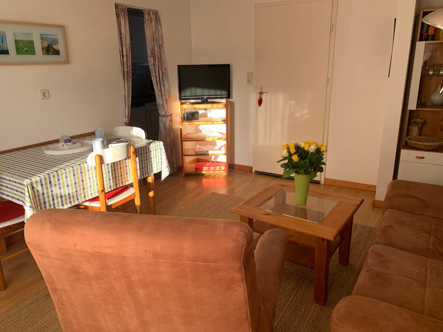 Die 52m² große Ferienwohnung liegt im Erdgeschoss und bietet bis zu 4 Personen Platz für den Urlaub in St. Peter Ording. Zur Ferienwohnung gehört eine möblierte Terrasse, Gartengrundstück und Spielplatz stehen zur Mitnutzung bereit. Zur Ausstattung des hellen Wohnzimmers gehört eine gemütliche Sitzecke, bestehend aus Ledercouch und Ledersessel. Am Esstisch nimmt die gesamte Familie Platz, für die multimediale Unterhaltung sorgen Flachbild-TV und kostenfreies W-LAN. Die separate Küche ist ausgestattet mit Cerankochfeld, Kühlschrank und Geschirrspüler sowie Mikrowelle und Kaffeemaschine. Zur Ferienwohnung gehören zwei Schlafzimmer. Eines ist ausgestattet mit großem 180x200cm Doppelbett (Durchgangszimmer), das zweite mit 2 Einzelbetten. Die Ferienwohnung verfügt über Duschbad und WC.