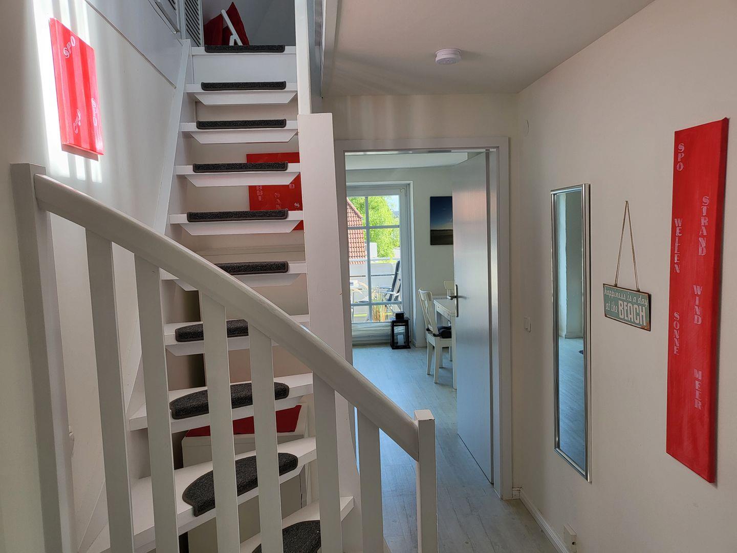 Wegen der offenen, relativ steilen Treppe ins OG eignet sich die Ferienwohnung nicht für die Nutzung mit Kleinkindern.