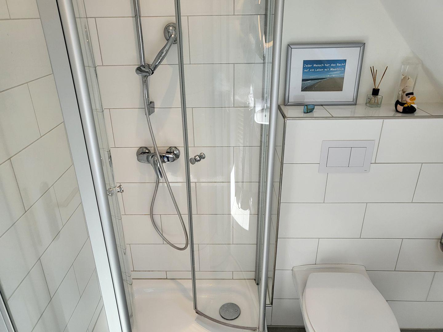 Zur Ferienwohnung gehört ein modernes, helles Duschbad mit WC.