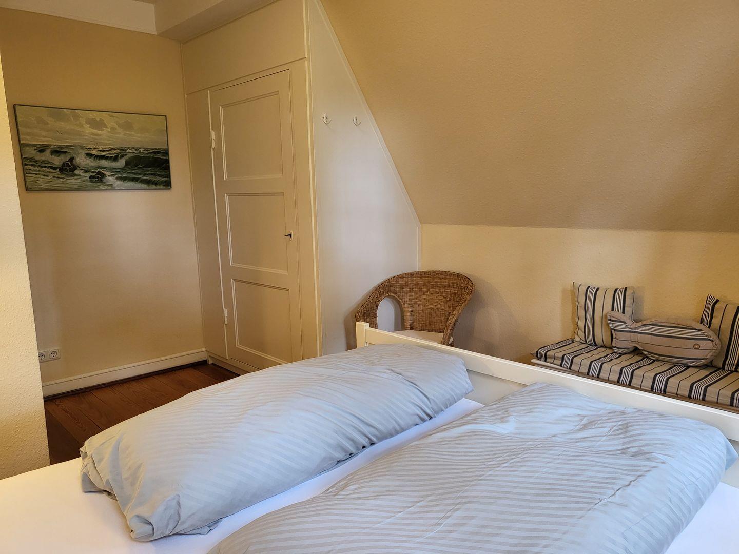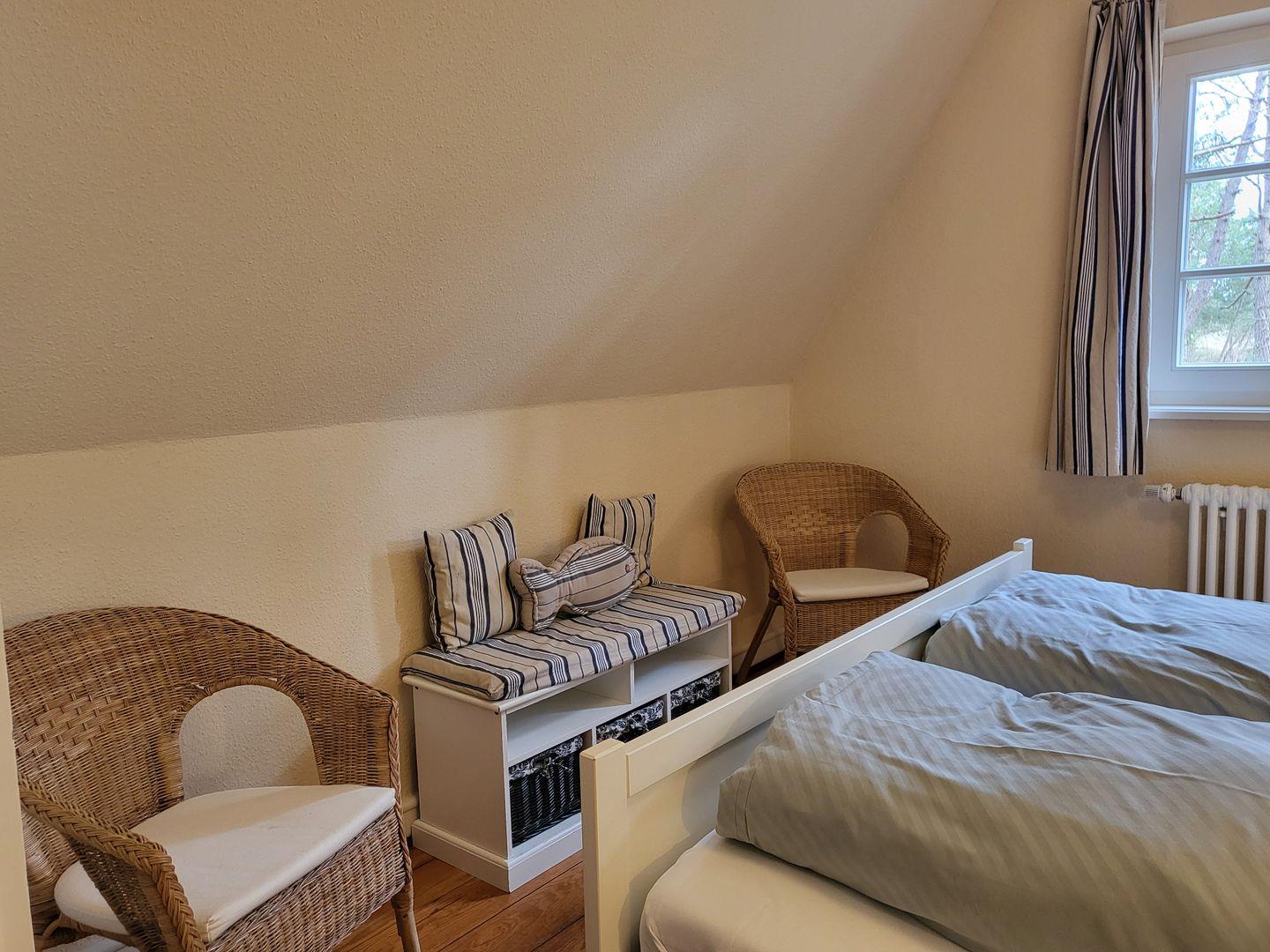 Im 2. OG befinden sich zwei weitere Schlafzimmer (eins mit einem Doppelbett – 1,60 x 2,00 m, eins mit zwei Einzelbetten – 0,90 x 2,00 m). Auch hier gibt es ein Duschbad mit WC.