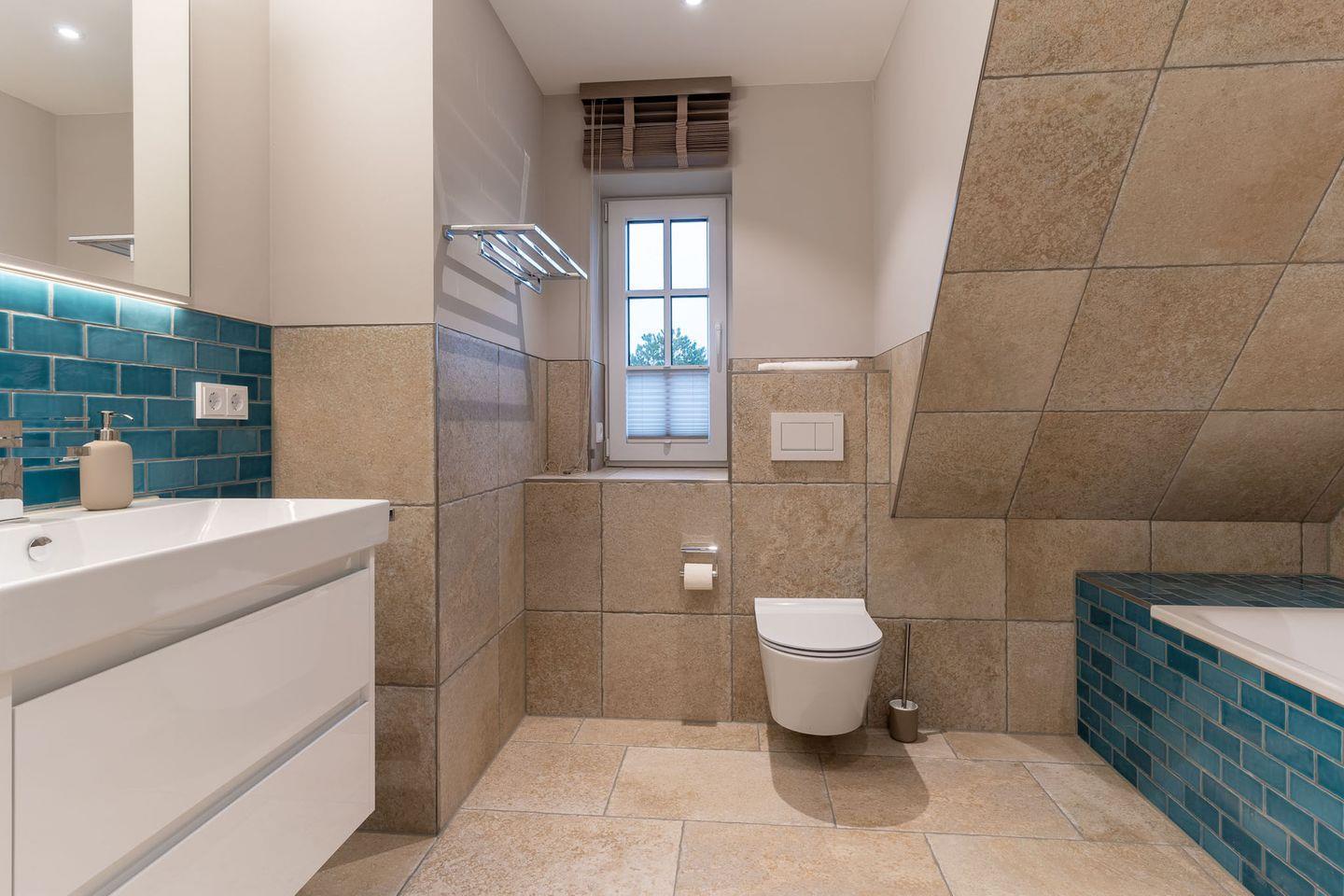 Ein weiteres Badezimmer im OG mit einer Badewanne runden das hochwertige Hauskonzept ab und lassen keine Wünsche offen.
