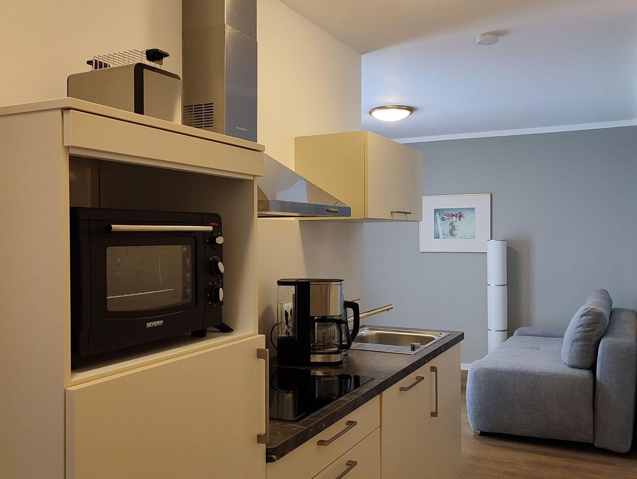 Unsere vollständig eingerichteten Wohnungen mit Küchenzeile, Bad und entweder einem Wohnschlafzimmer oder getrennten Wohn- und Schlafzimmern können auch tageweise gebucht werden. Auch eine Dauervermietung ist möglich. Zwei Apartments im Erdgeschoss sind barrierearm.