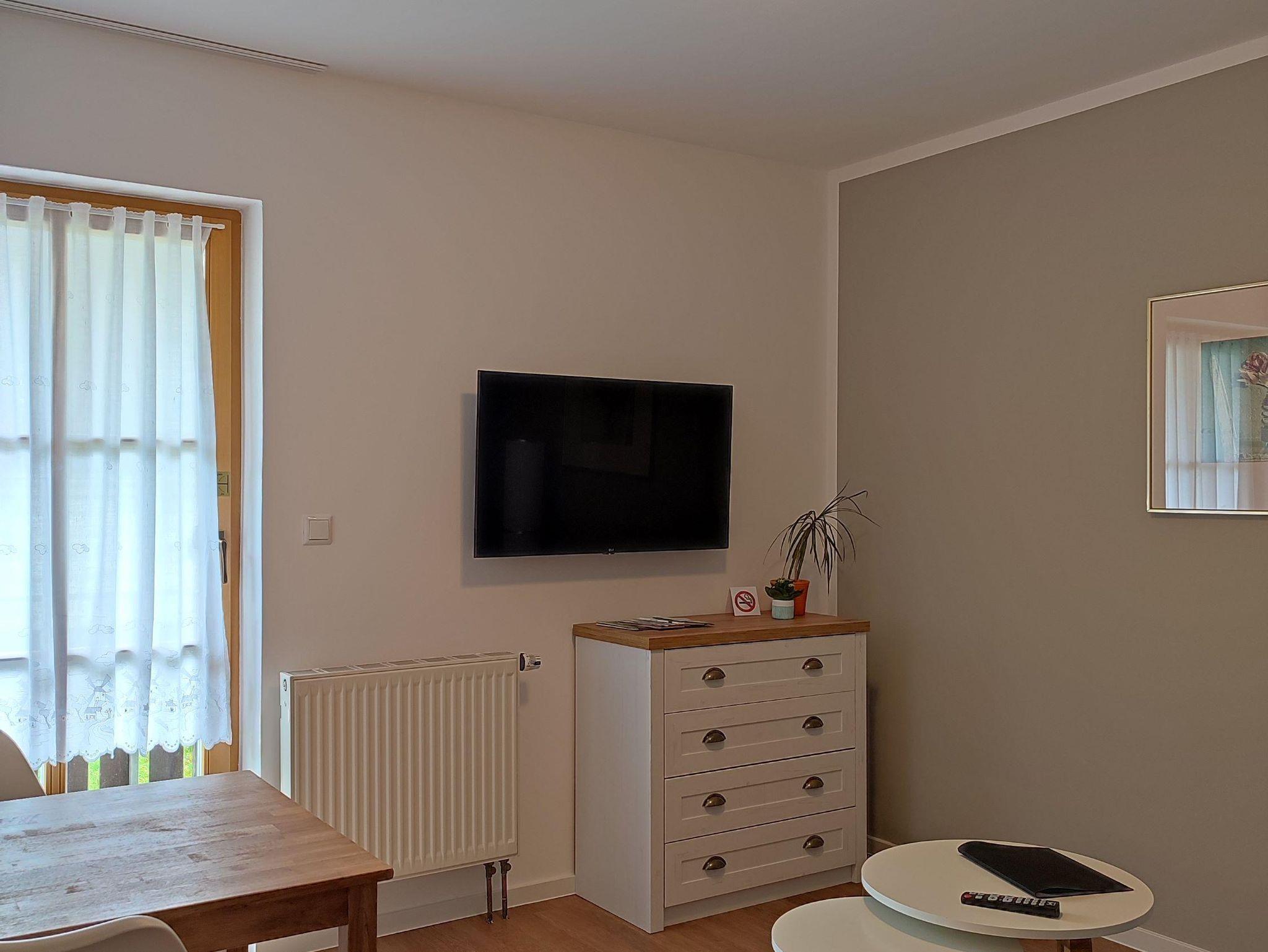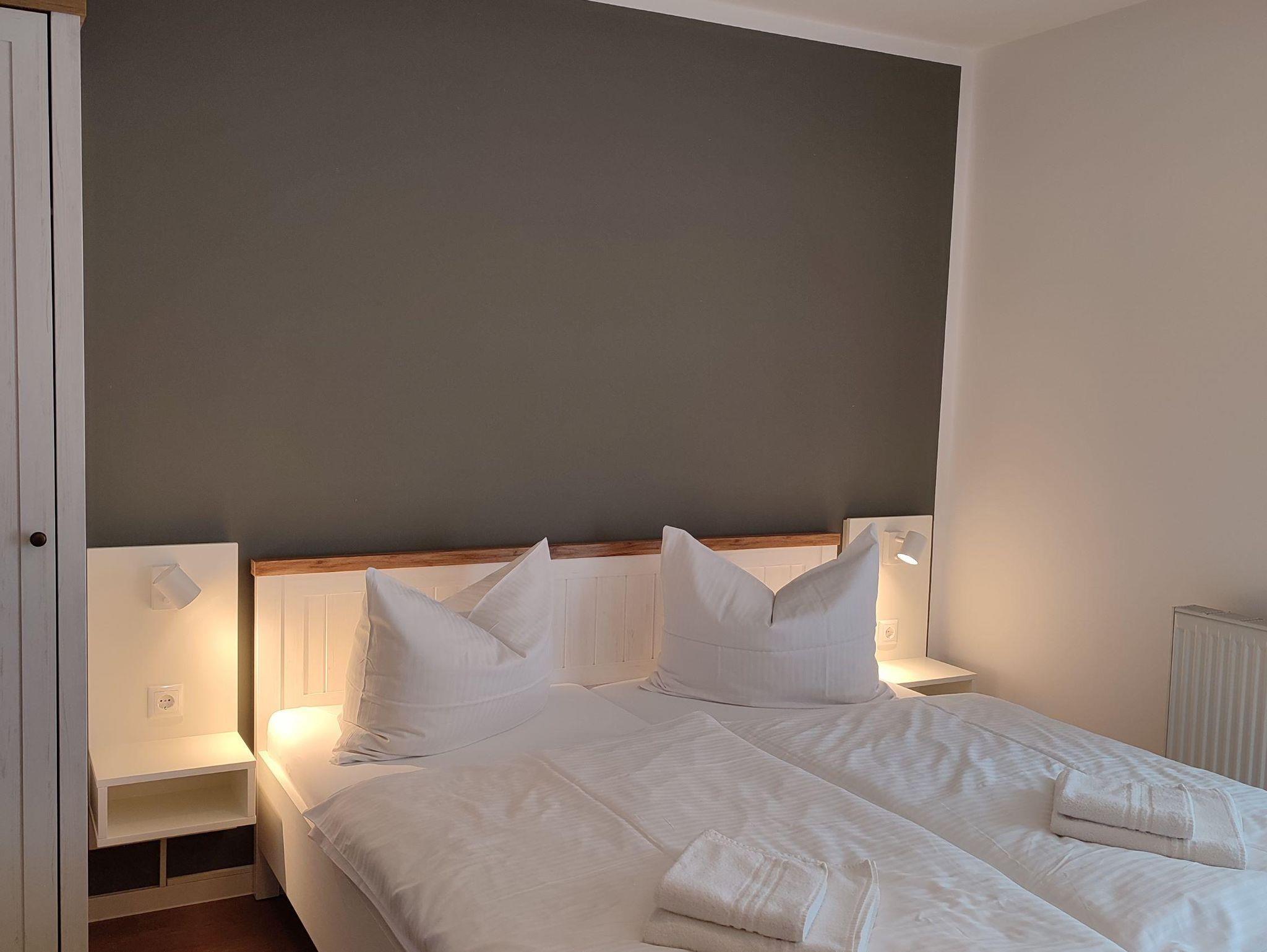 Willkommen in Berta, unserem zauberhaften Zwei-Raum-Apartment im Obergeschoss. Mit ca. 35 qm bietet es Platz für 2 bis 3 Personen. Der großzügige Balkon nach Südost lädt ein, die Sonne zu genießen. Das stilvolle Wohnzimmer mit ausziehbarem Schlafsofa, TV/WLAN und einem kleinen Esstisch schafft eine gemütliche Atmosphäre. Die integrierte Küchenzeile, das separate Schlafzimmer mit einem komfortablen Doppelbett und das moderne Badezimmer mit ebenerdiger Dusche vervollkommnen Ihren Aufenthalt. Haustiere sind herzlich willkommen.