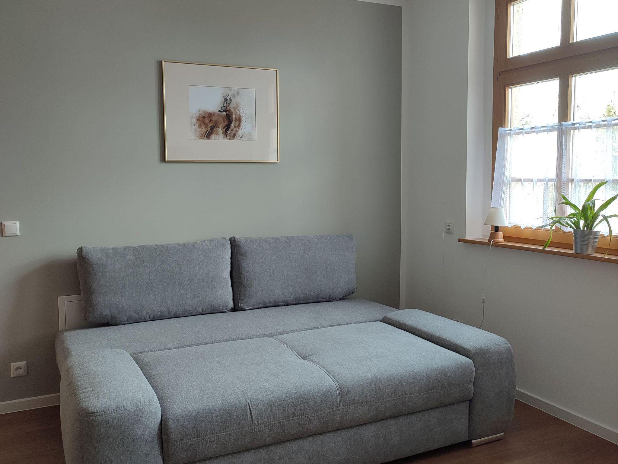 Unser Zwei-Raum-Apartment „Käthe“ im Erdgeschoss mit ca. 45 qm bietet Platz für 2 bis 4 Personen. Der großzügige Wohnbereich mit ausziehbarem Schlafsofa, TV/WLAN und großem Esstisch schafft eine gemütliche Atmosphäre. Nutzen Sie die gut ausgestattete Küchenzeile, das Schlafzimmer mit Doppelbett und das moderne Badezimmer mit ebenerdiger Dusche. Haustiere sind herzlich willkommen.
