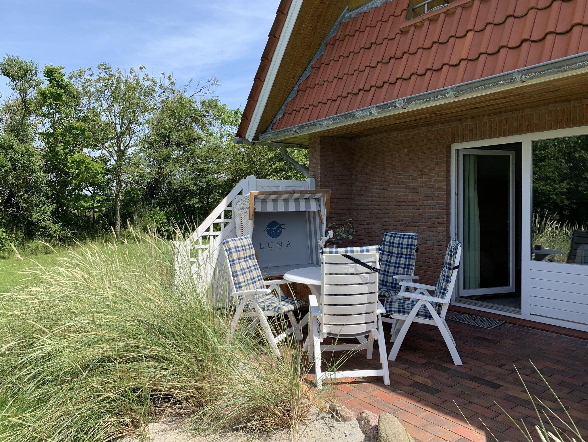• Terrasse mit Gartenmöbeln, Strandkorb, Gartenbenutzung