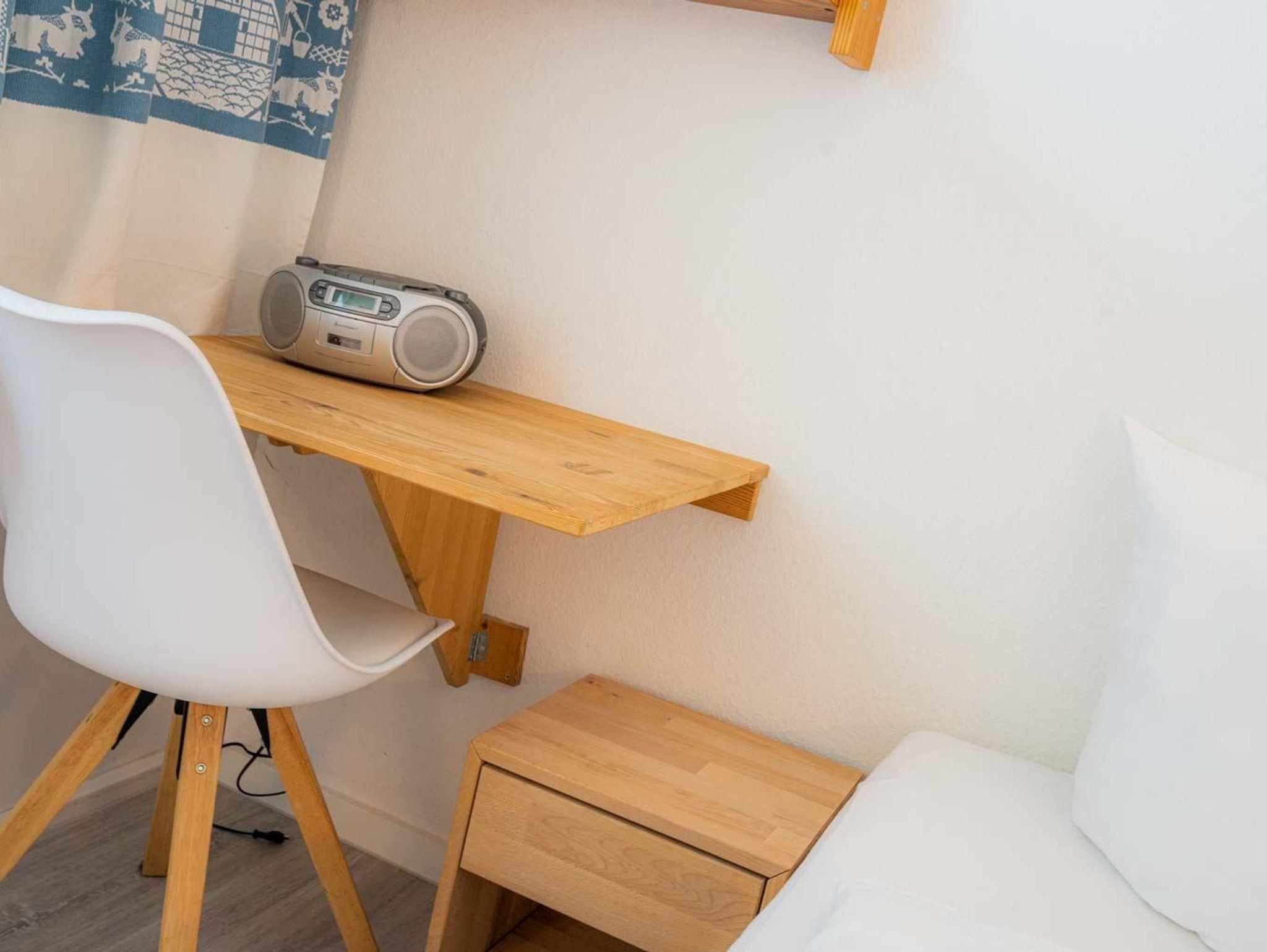 2. Schlafzimmer mit Einzelbett (90x190cm), Schreibtisch, Stuhl und Waldblick.