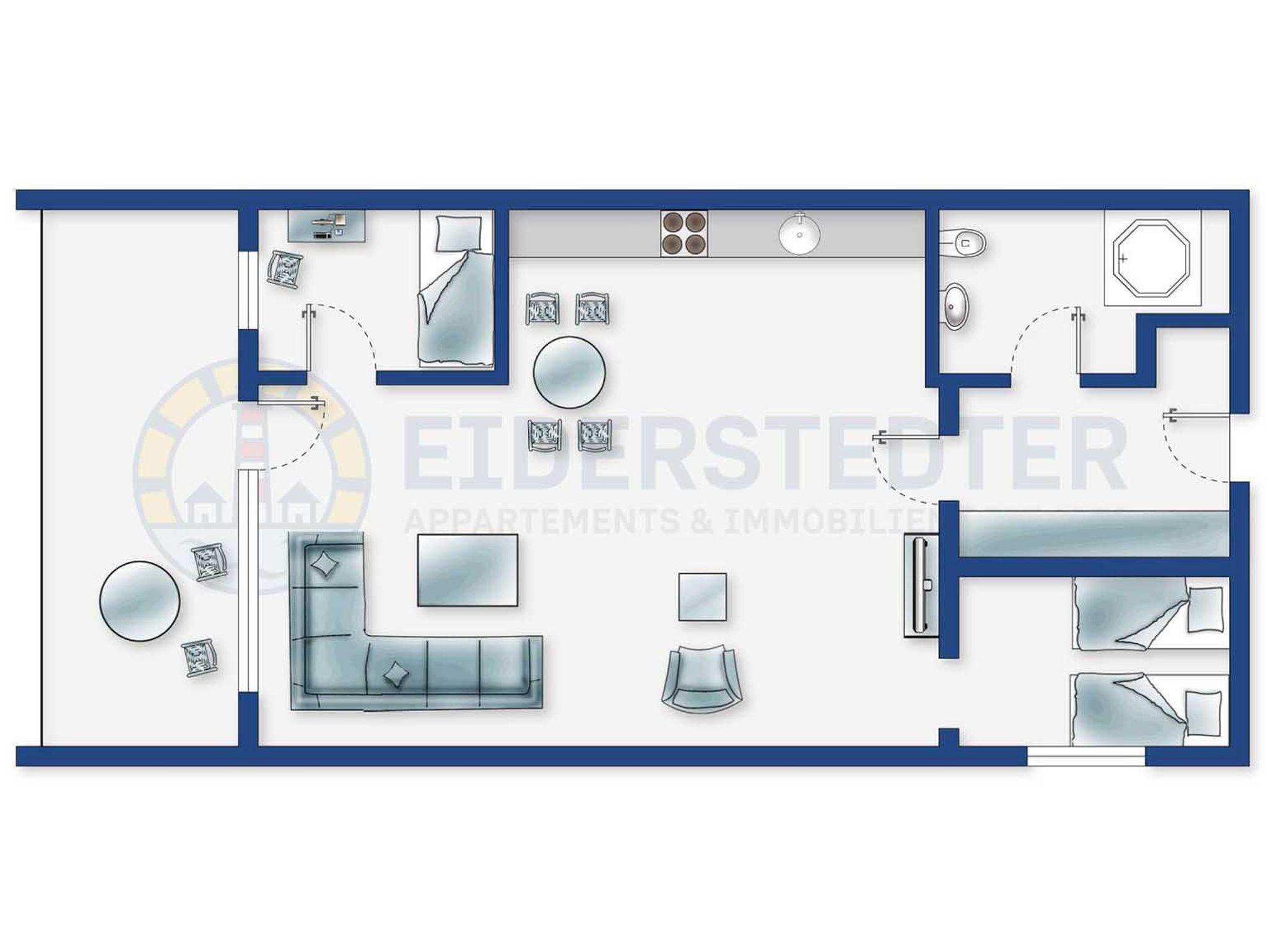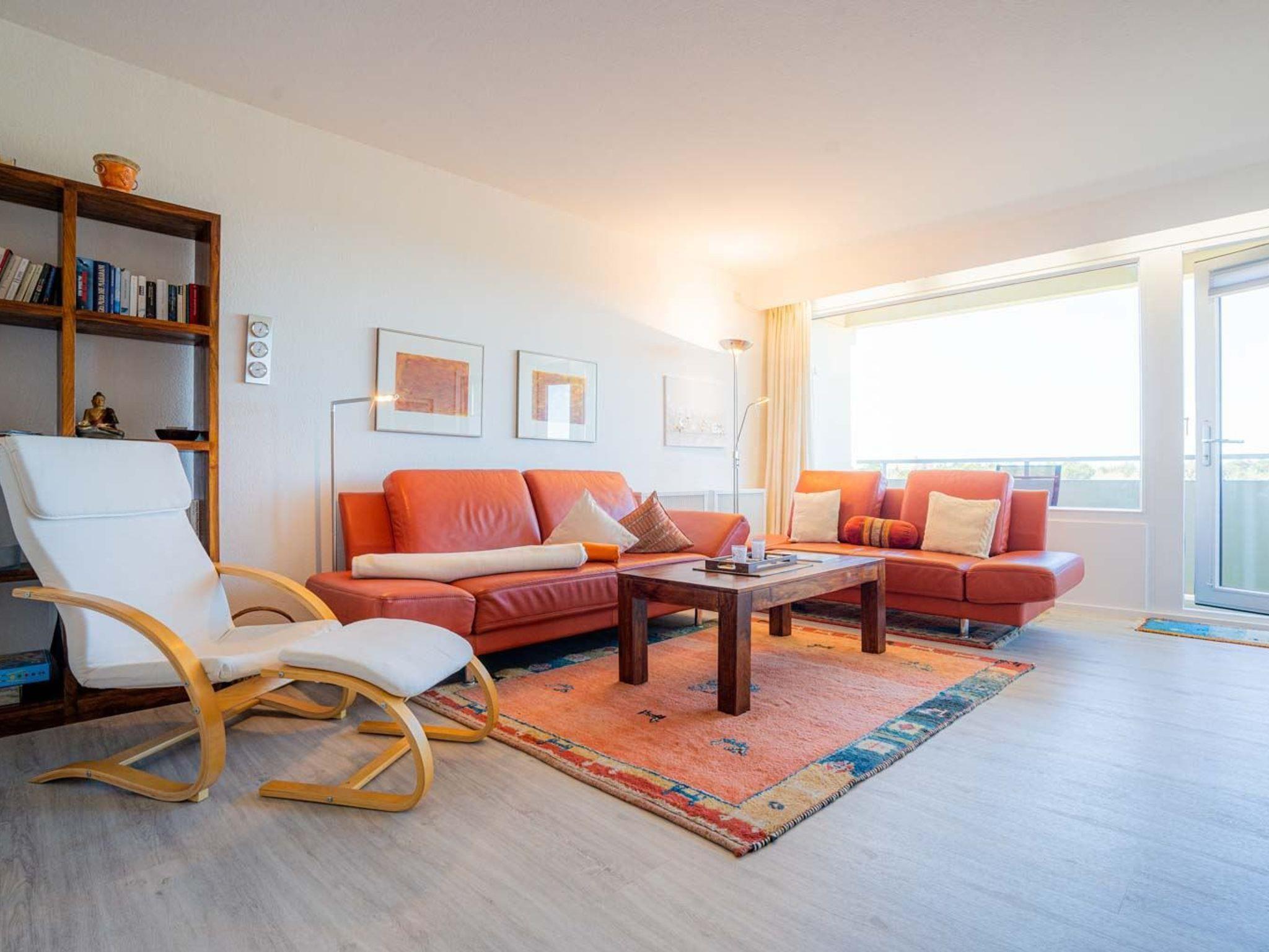 Schöne 2 1/2-Zimmer-Ferienwohnung im Haus Atlantic mit ca. 47 qm auf 1 Ebene (4. OG, mit Fahrstuhl) für bis zu 3 Personen. In strandnaher Lage im Ortsteil Bad in St. Peter-Ording. Aufgrund der guten Lage im Kurzentrum eignet sich die Wohnung auch gut für einen Kururlaub oder für Begleitpersonen von Kurgästen. Mit schönem Ausblick über weite Teile von St. Peter-Ording und den Wald.