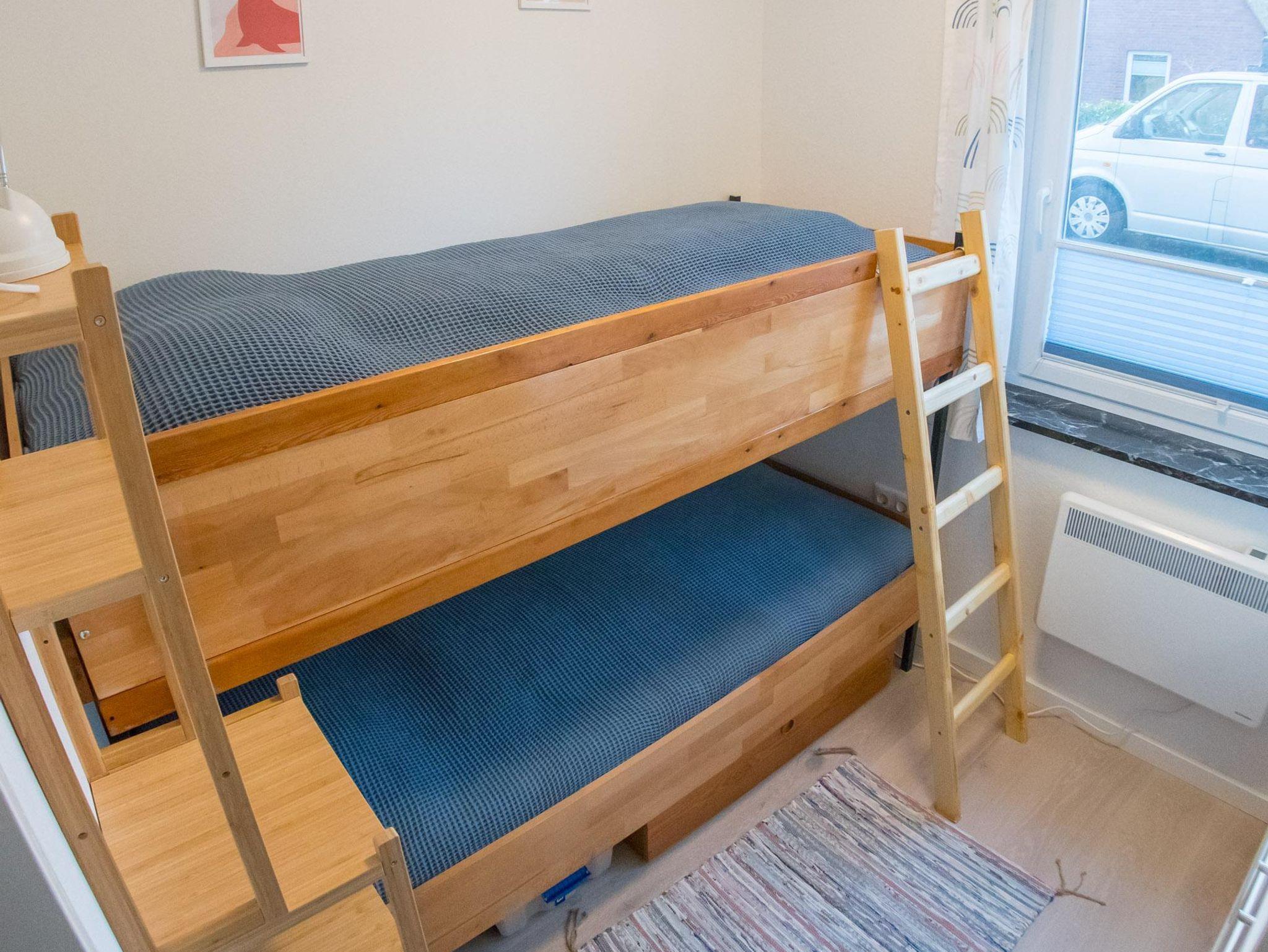 Im Schlafzimmer befindet sich ein Ehebett (2 Matratzen à 1,0 m x 2 m, Lattenrost und Matratzen 2023 erneuert), das Kinderzimmer ist mit einem Doppelstockbett (0,9 m x 2 m) ausgestattet. Zusätzlich lässt sich die Couch im Wohnzimmer zu einem Bett umbauen, so dass auch 6 Personen eine Schlafgelegenheit finden.