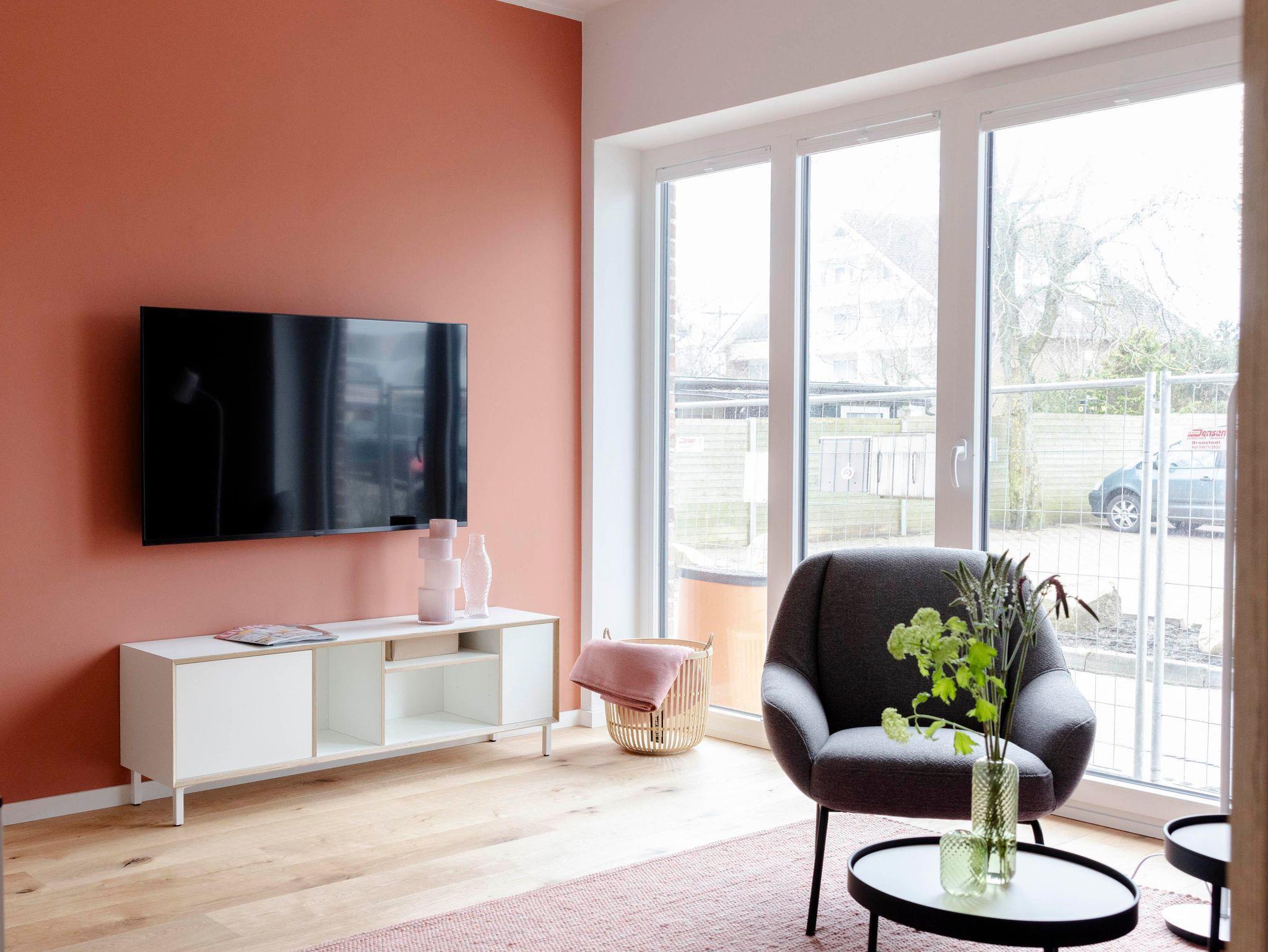 Und noch ein wenig mehr. Mit der Farbe rostrot als Akzent fühlt man sich einfach wohl. Die voll ausgestattete Küche inspiriert. Das Bad ist großzügig und der offene Wohnbereich modern.