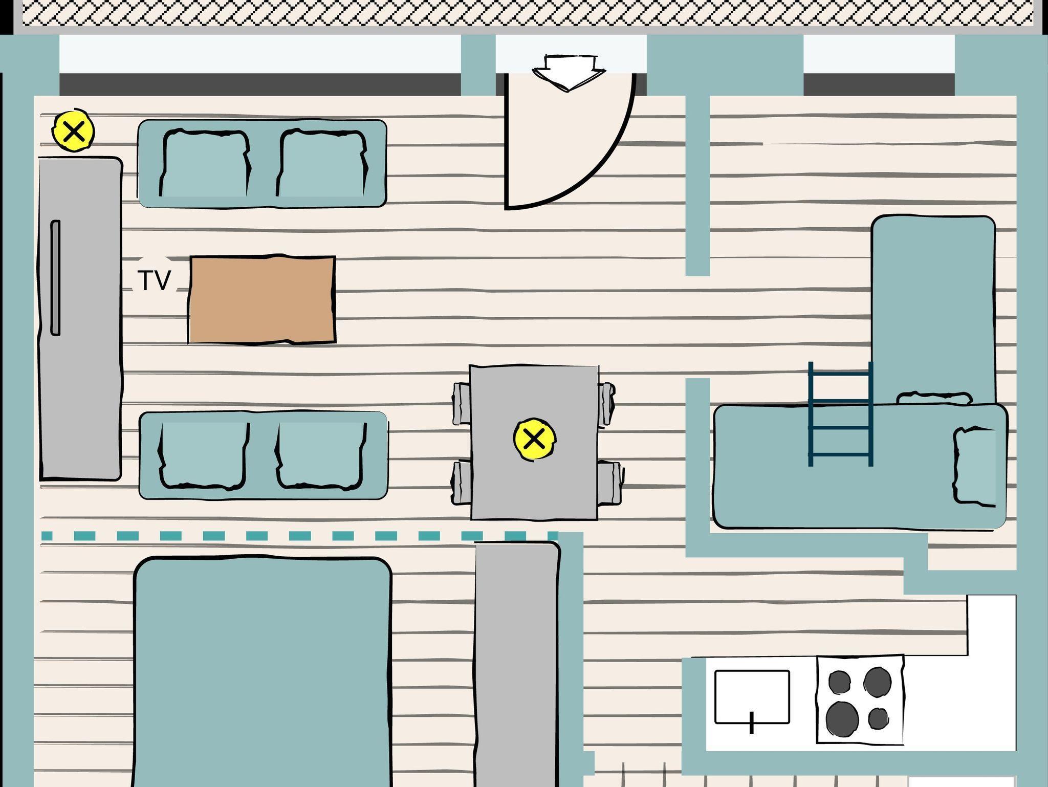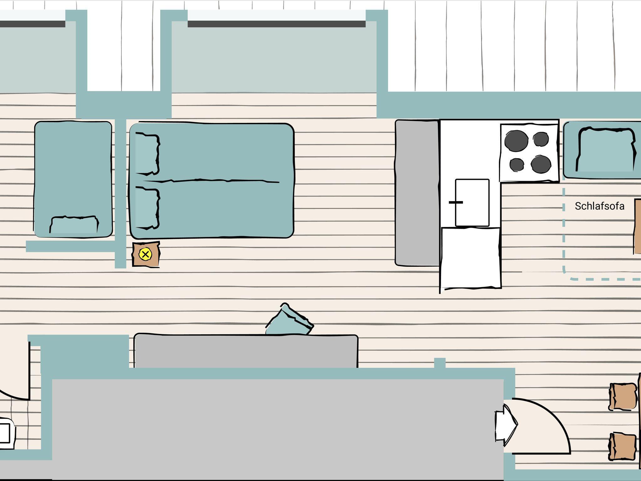 - Wohnküche mit Küchenzeile (Kühlschrank, Spülmaschine, Herd, KEIN Backofen, Kaffeemaschine, Toaster und Wasserkocher) - Essecke - Satelliten TV - Dusche & WC, Föhn, Bettwäsche - WLAN!