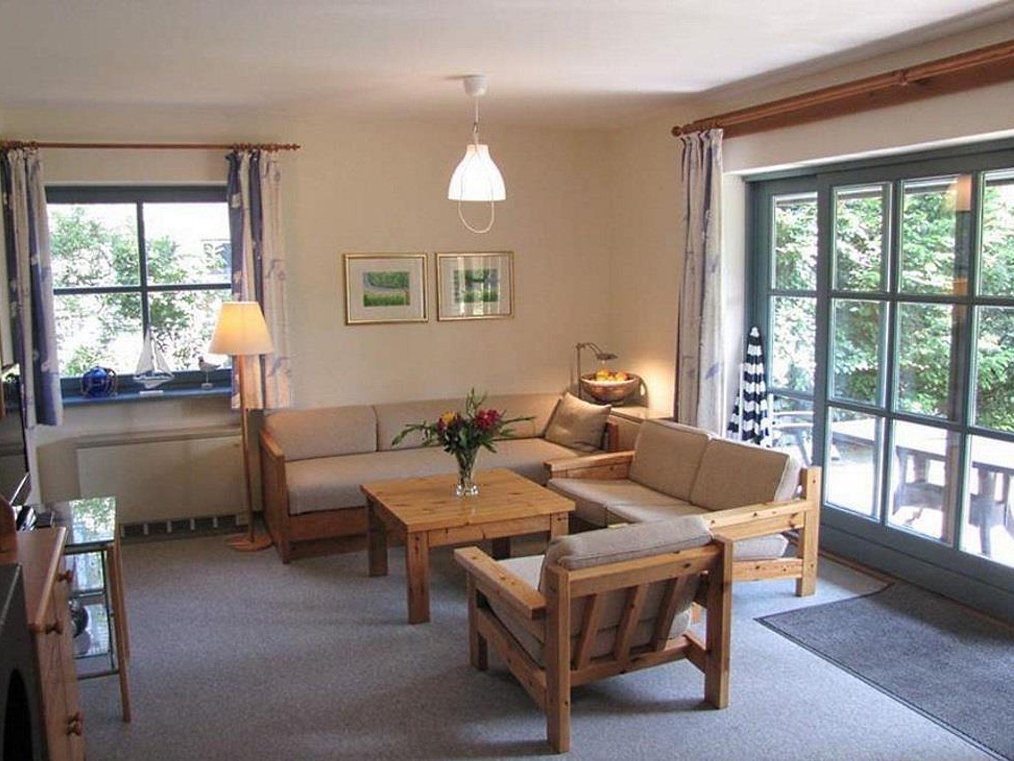 Die Wohnung Tega unten liegt ebenerdig und ist mit 65qm Wohnfläche im skandinavischen Stil ausgestattet. Sie finden einen Wohnschlafraum mit Schlafcouch, Sitz- und Essecke, dänischem Kaminofen, sowie eine sonnige Fensterfront mit Ausgang zur möbilierten Terrasse vor. In der Ferienwohnung befindet sich eine separate Küche voll ausgestattet mit Mikrowelle und Geschirrspüler, Insektenschutzfenster, ein Duschbad, sowie ein separates WC. Ein Schlafzimmer mit einem Doppelbett und verstellbaren Lattenrosten lädt zum Schlummern ein. Ein weiterer Schlafraum mit einen Etagenbett ist vorhanden. Bettwäsche und Handtücher sind auf Anfrage mietbar.