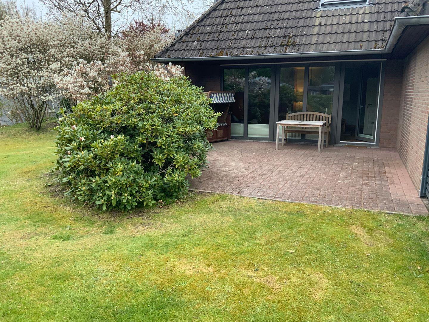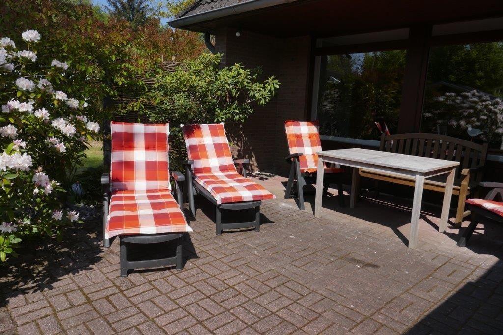 Auf der großzügigen und überdachten Süd-Terrasse mit Gartenmöbeln und Strandkorb können Sie den Tag gemütlich ausklingen lassen.