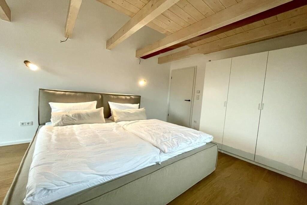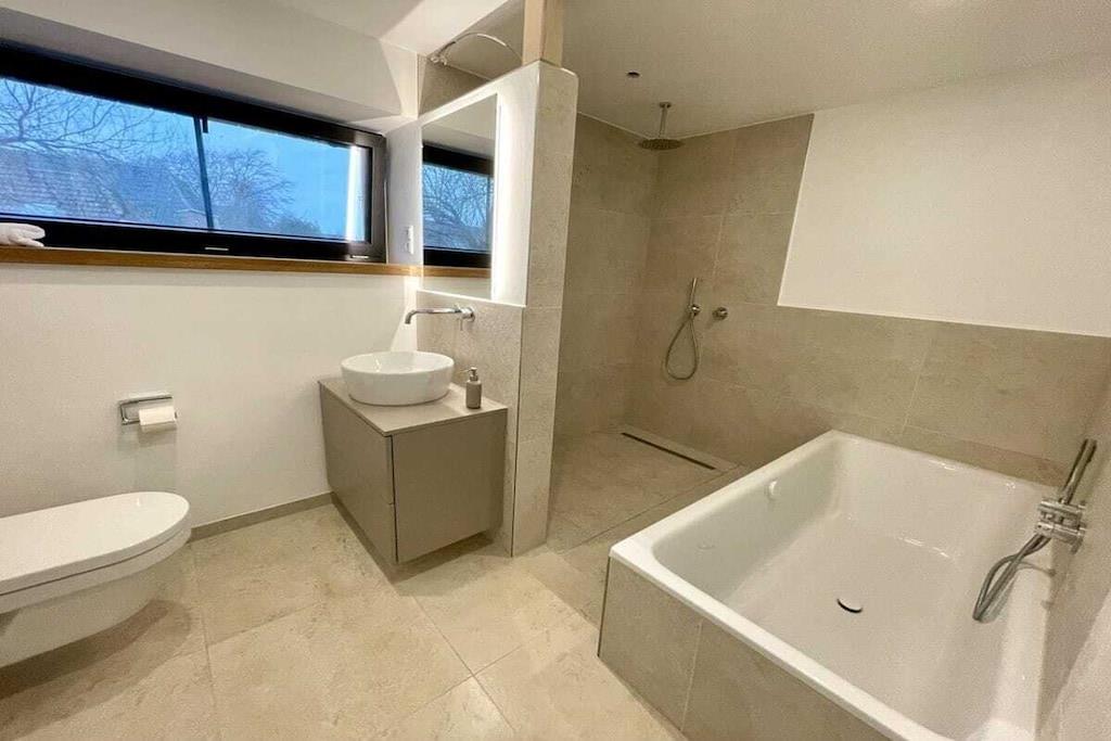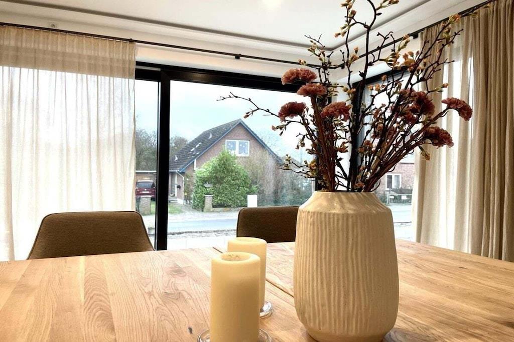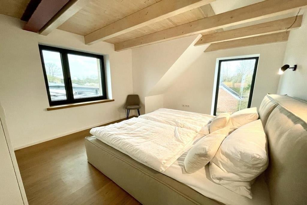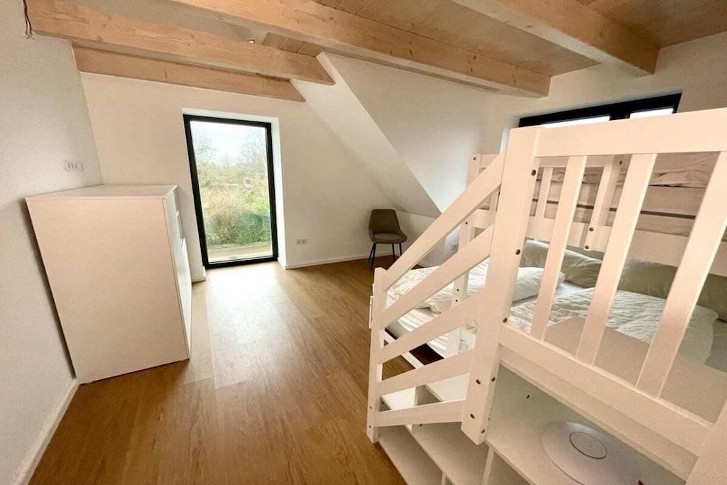 Det luksuriøse feriehuset «DS11» overlater ingenting å ønske. Denne totalrenoverte bygningen består av hovedhuset og en ekstra ferieleilighet som kan bestilles separat. Følgende fasiliteter venter deg i «DS11»: Gulvvarme i alle rom Mørkleggingsgardiner med elektriske skodder på soverommene og persienner i stuen Kjøkken av høy kvalitet med ismaskin og stor induksjonstopp med integrert avtrekksvifte Møbler i heltre eik Åpne takbjelker med en herlig romfølelse i øverste etasje Du kommer inn i huset gjennom den imponerende gangen. I første etasje finner du en svært romslig stue og spisestue med åpen kjøkkenløsning og en stor skyvedør i glass som fører ut til den sørvestvendte terrassen. I første etasje er det også et luksuriøst bad med stort badekar og dusj. Videre (ikke avbildet ennå) er det i første etasje et lite soverom med enkeltseng og et hjemmekontorområde. Ovenpå er det tre soverom. Soverom 1 har en stor familieseng med springmadrass som måler 240x200 cm. Det andre soverommet har en køyeseng, hvor den nederste køyesengen kan utvides til 180x200 cm. Det tredje soverommet er møblert med en seng på 180x200 cm. Huset, inkludert landskapsarbeid, vil være ferdigstilt innen 1. april 2025.