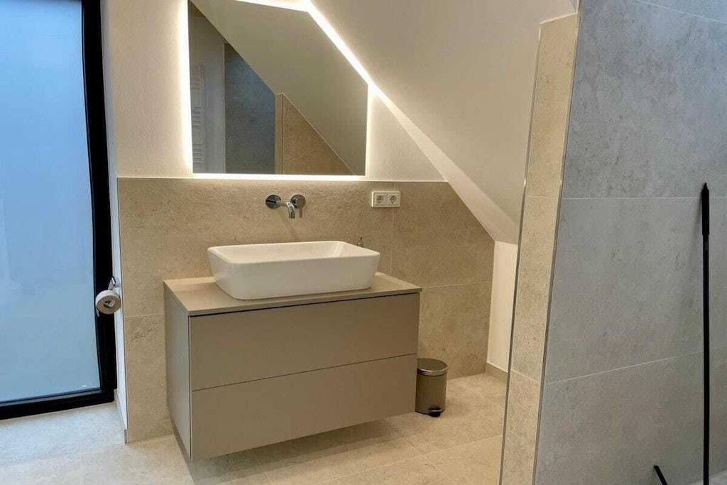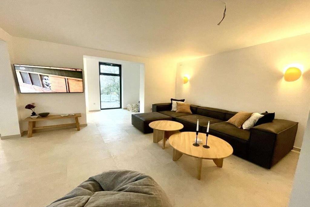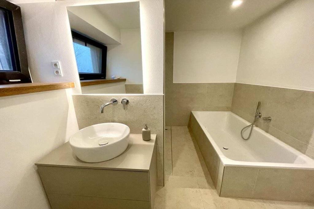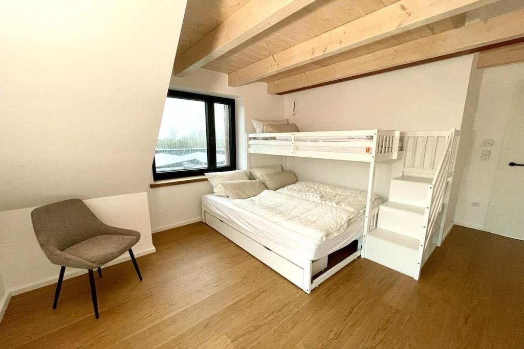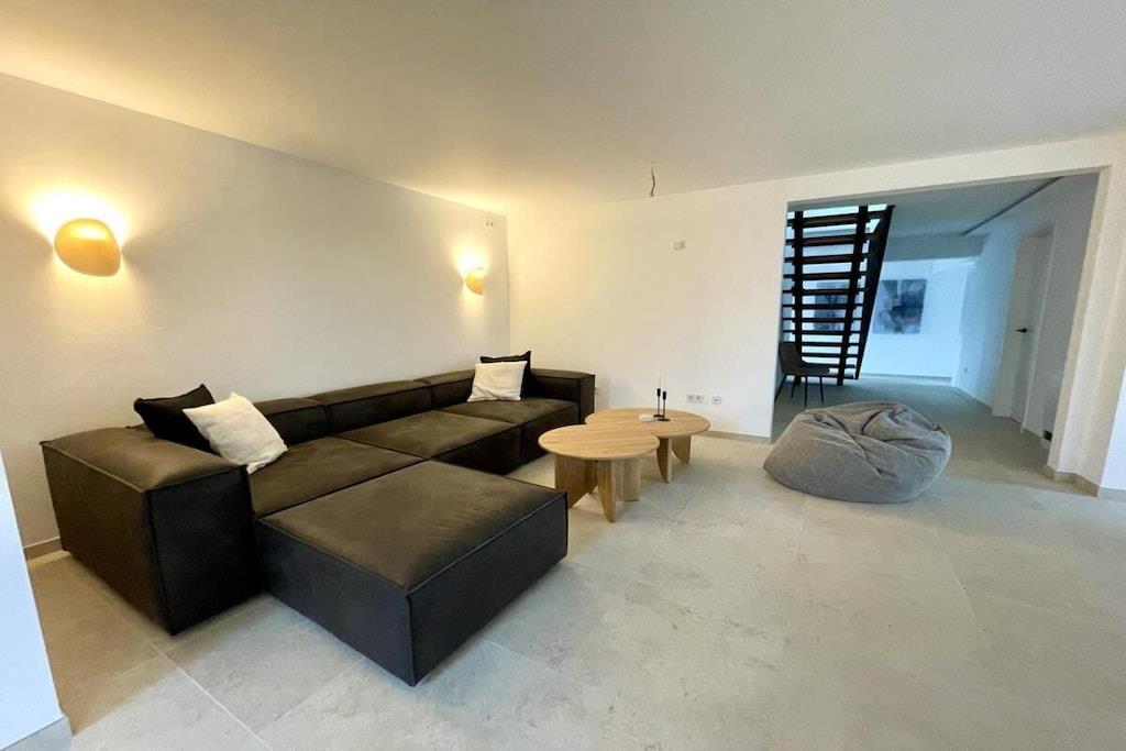 Det luksuriøse feriehuset «DS11» overlater ingenting å ønske. Denne totalrenoverte bygningen består av hovedhuset og en ekstra ferieleilighet som kan bestilles separat. Følgende fasiliteter venter deg i «DS11»: Gulvvarme i alle rom Mørkleggingsgardiner med elektriske skodder på soverommene og persienner i stuen Kjøkken av høy kvalitet med ismaskin og stor induksjonstopp med integrert avtrekksvifte Møbler i heltre eik Åpne takbjelker med en herlig romfølelse i øverste etasje Du kommer inn i huset gjennom den imponerende gangen. I første etasje finner du en svært romslig stue og spisestue med åpen kjøkkenløsning og en stor skyvedør i glass som fører ut til den sørvestvendte terrassen. I første etasje er det også et luksuriøst bad med stort badekar og dusj. Videre (ikke avbildet ennå) er det i første etasje et lite soverom med enkeltseng og et hjemmekontorområde. Ovenpå er det tre soverom. Soverom 1 har en stor familieseng med springmadrass som måler 240x200 cm. Det andre soverommet har en køyeseng, hvor den nederste køyesengen kan utvides til 180x200 cm. Det tredje soverommet er møblert med en seng på 180x200 cm. Huset, inkludert landskapsarbeid, vil være ferdigstilt innen 1. april 2025.