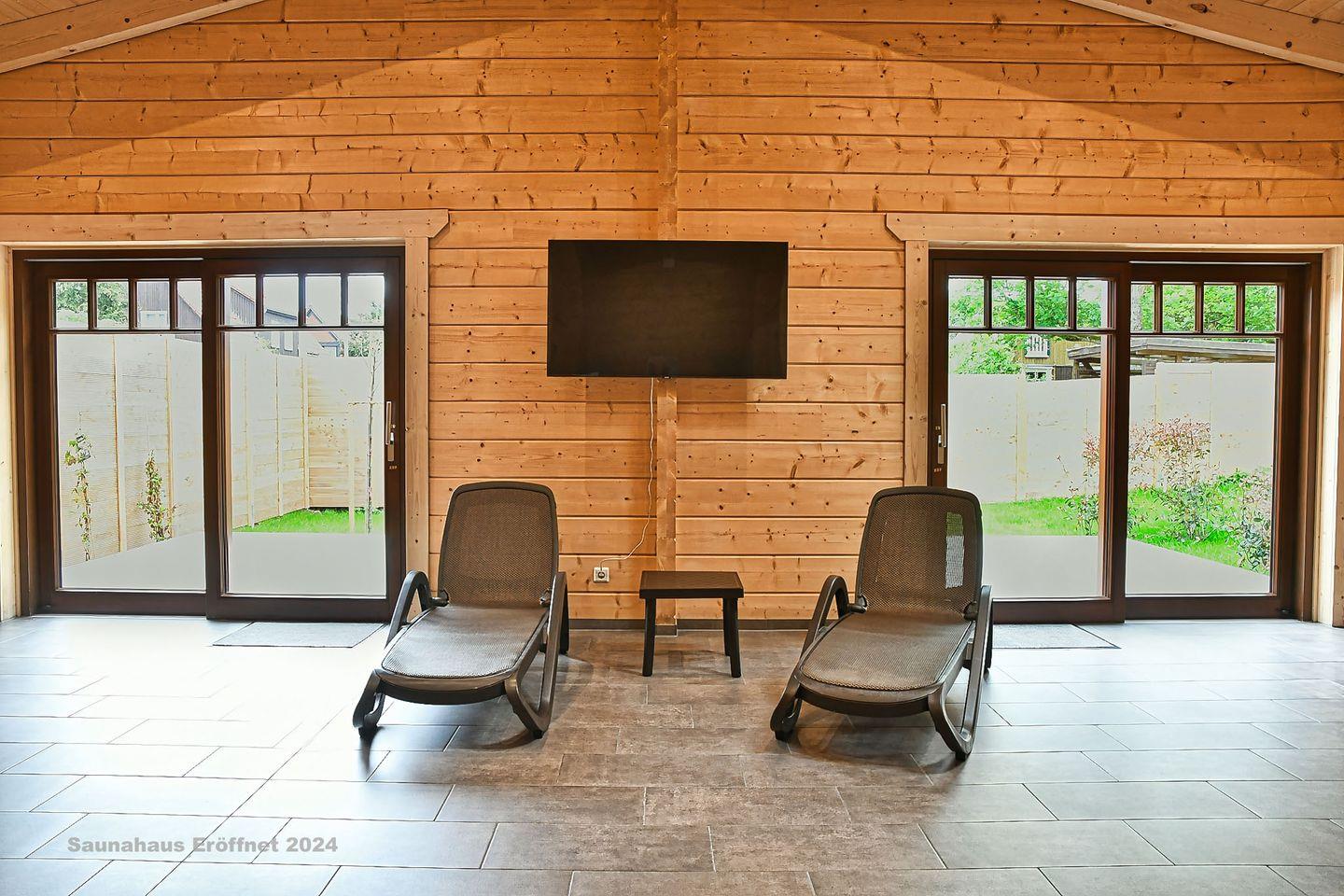 Das Badezimmer ist mit einer Dusche mit Duschwanne, Waschbecken, Spiegel und WC ausgestattet. Zusätzlich steht Ihnen ein separates Gäste-WC zur Verfügung. Für besondere Entspannungsmomente gibt es n der Anlage ein Saunahaus wodurch Sie sich nach einem aktiven Tag wunderbar erholen können.
